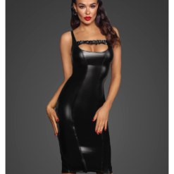 Noir Handmade Black Matte Look Mini Dress With Lace-up Front