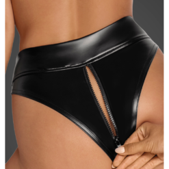 Allure Lingerie Black Wet Look Open-back Crotchless Panties