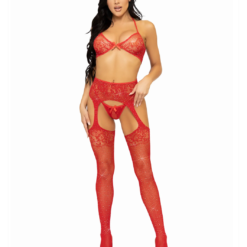 Leg Avenue Red Net Rhinestone Bra & Crotchless Tights