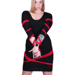 MAKE Black Tencel Dress With Sewn-in Red Sashes