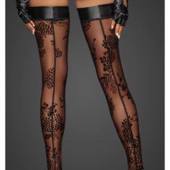 Noir Handmade Black Footless Hold-up Stockings With Flock Print