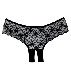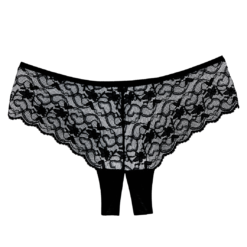 Black lace crotchless shorts.