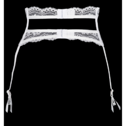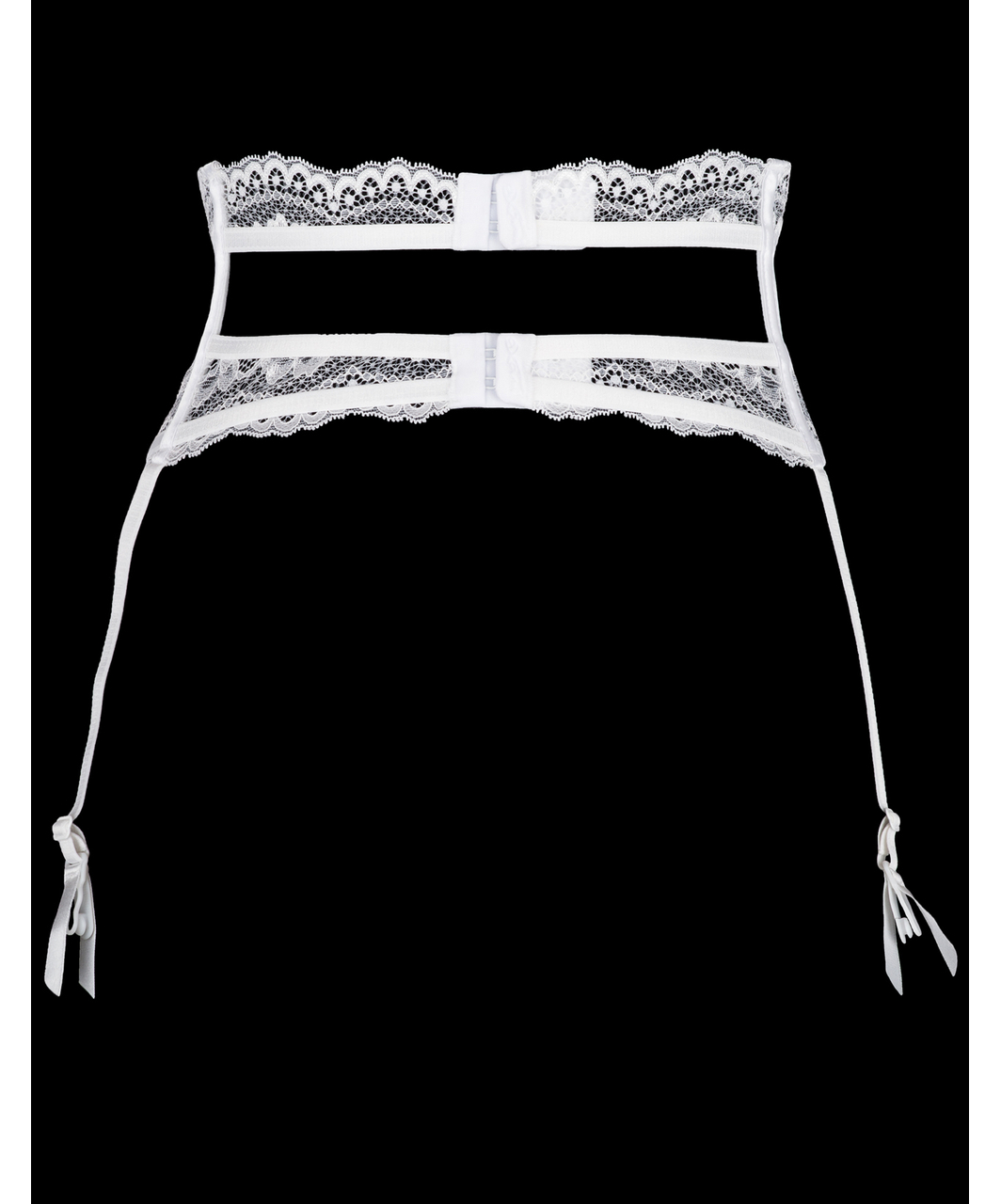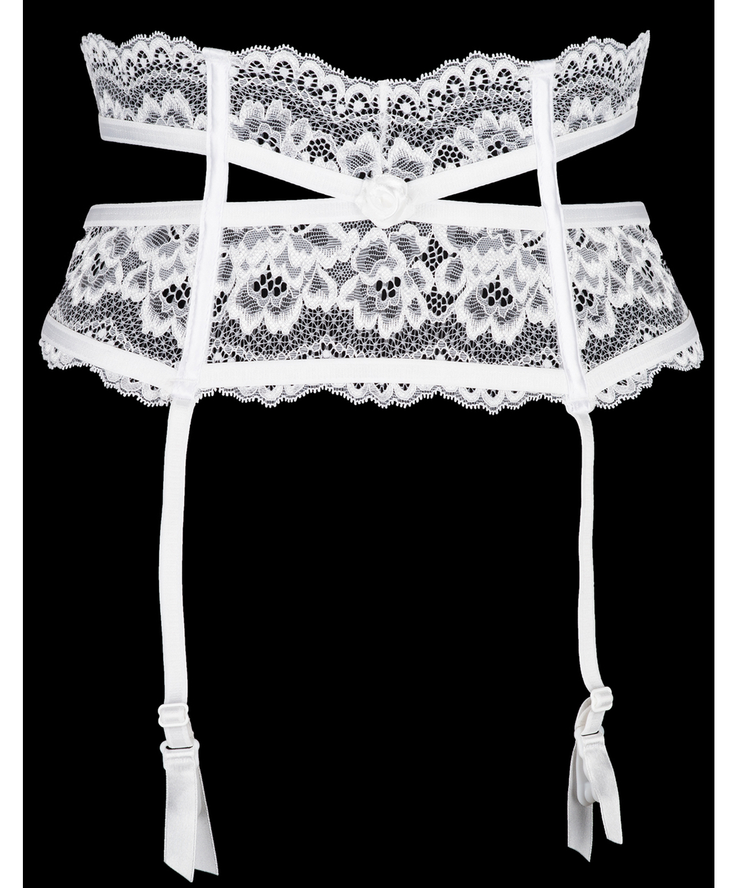 Angelic from the Scent of a Woman collection is a white suspender belt with elastic vertical underwire and floral lace. The length of the garters is easily adjustable. The belt fastens at the back with three rows of hooks.