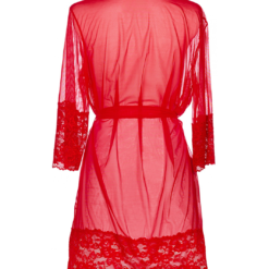 Sheer and soft, long dressing gown with floral pattern lace trim and self tie belt. Unisize (S-L). Without bra and panties.