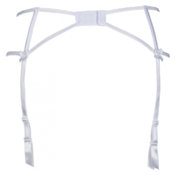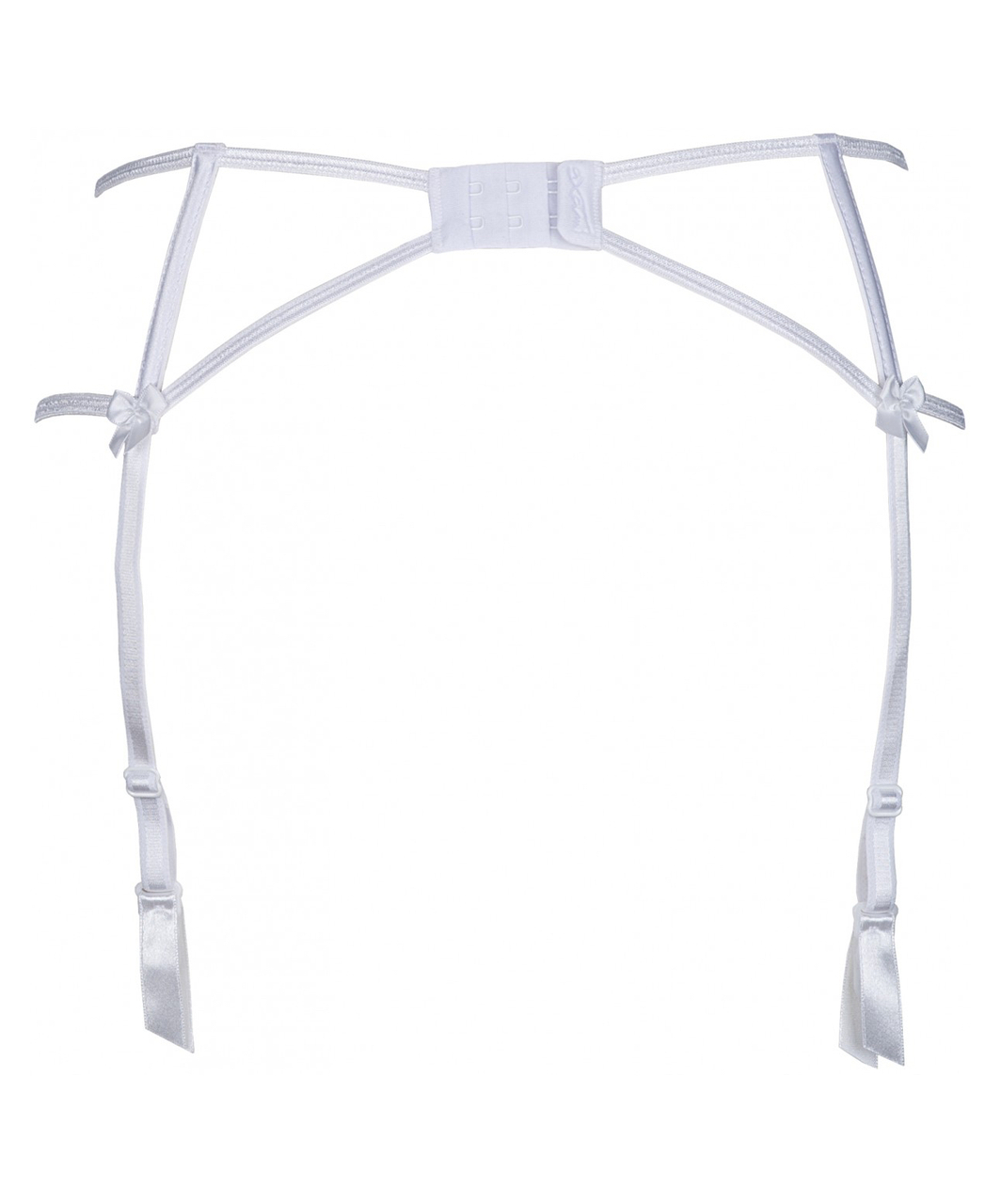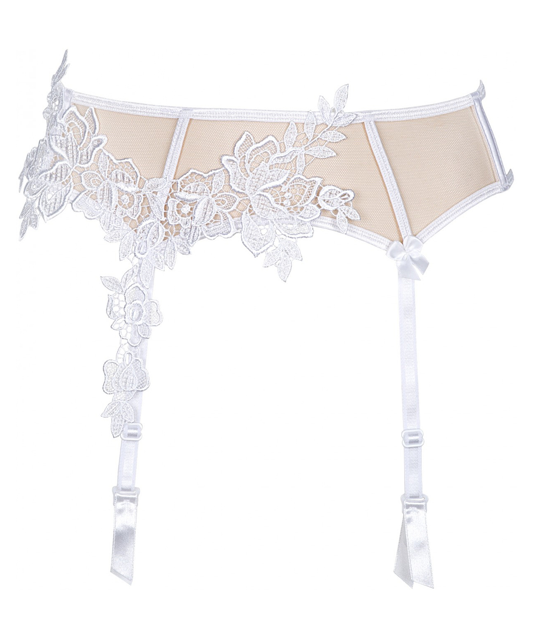 White garter belt with sheer beige inserts and floral embroidery. Adjustable straps and closure. Fabric: 100% polyester. Wash by hand, max temp 30 °C.