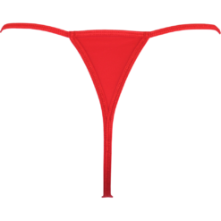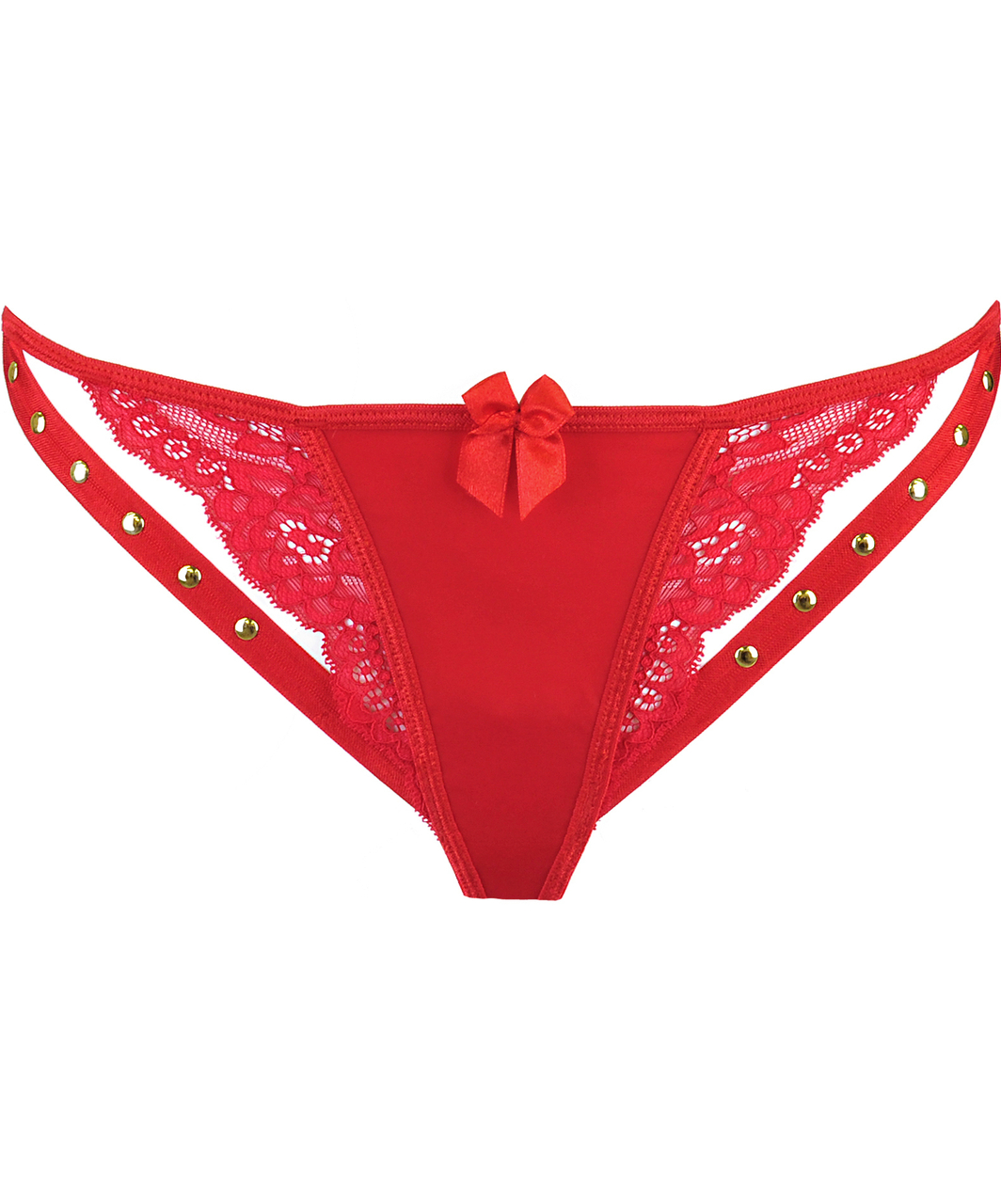 Red string adorned with lace and and gold-coloured details.