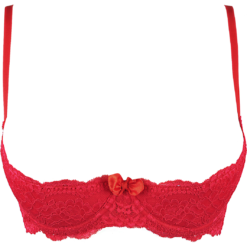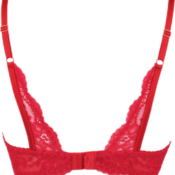 Red lace shelf bra with underwire cups. Adjustable straps and hook and eye back closure.