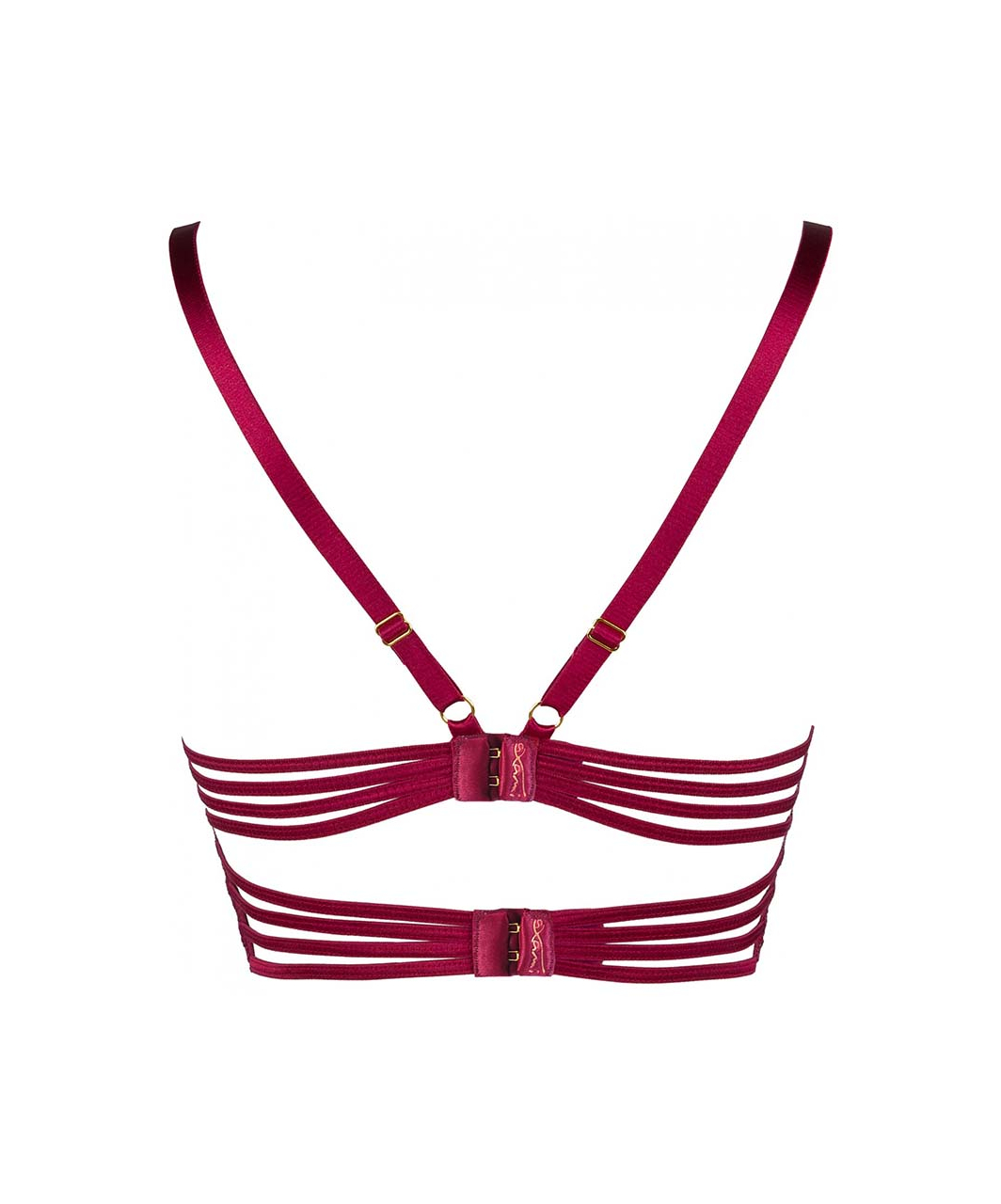 Malaga Loca collection lace bra in burgundy color with double straps on the back. The bra has supported cups, the length of the straps can be easily changed. Double hook clasp on the back.