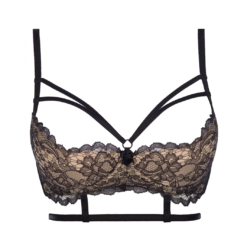 Candy Shop collection Marshmallow black, floral lace bra with supportive hoops and half cups made of thin, nude padding. The length of the straps are easily adjustable. The bra has a three-row hook clasp on the back (variable circumference).
