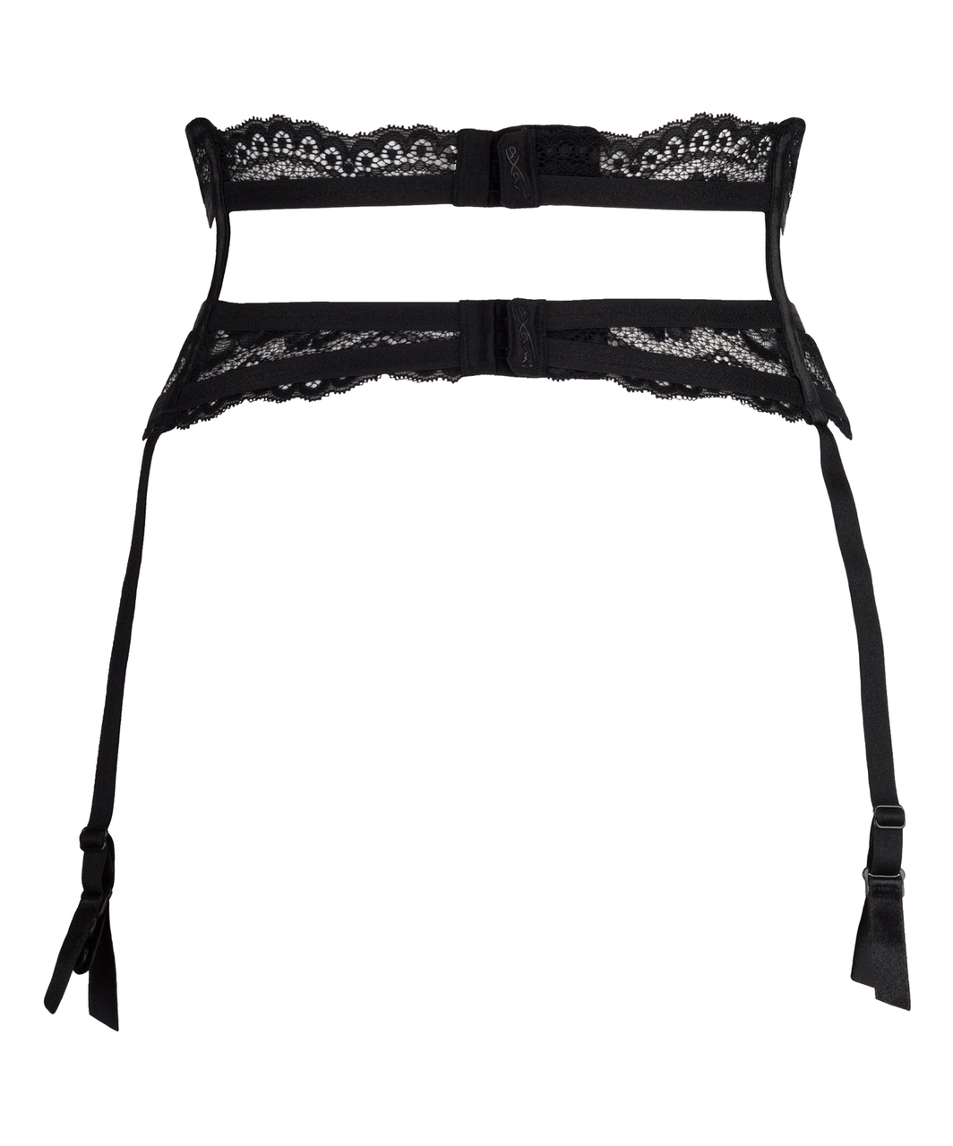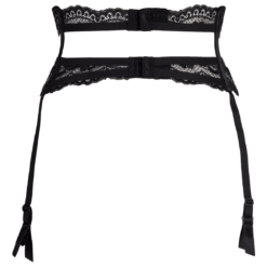 Scent of a Woman collection Poison black suspender with a unique design made to emphasise the waistline and hips with vertical support straps and floral lace.