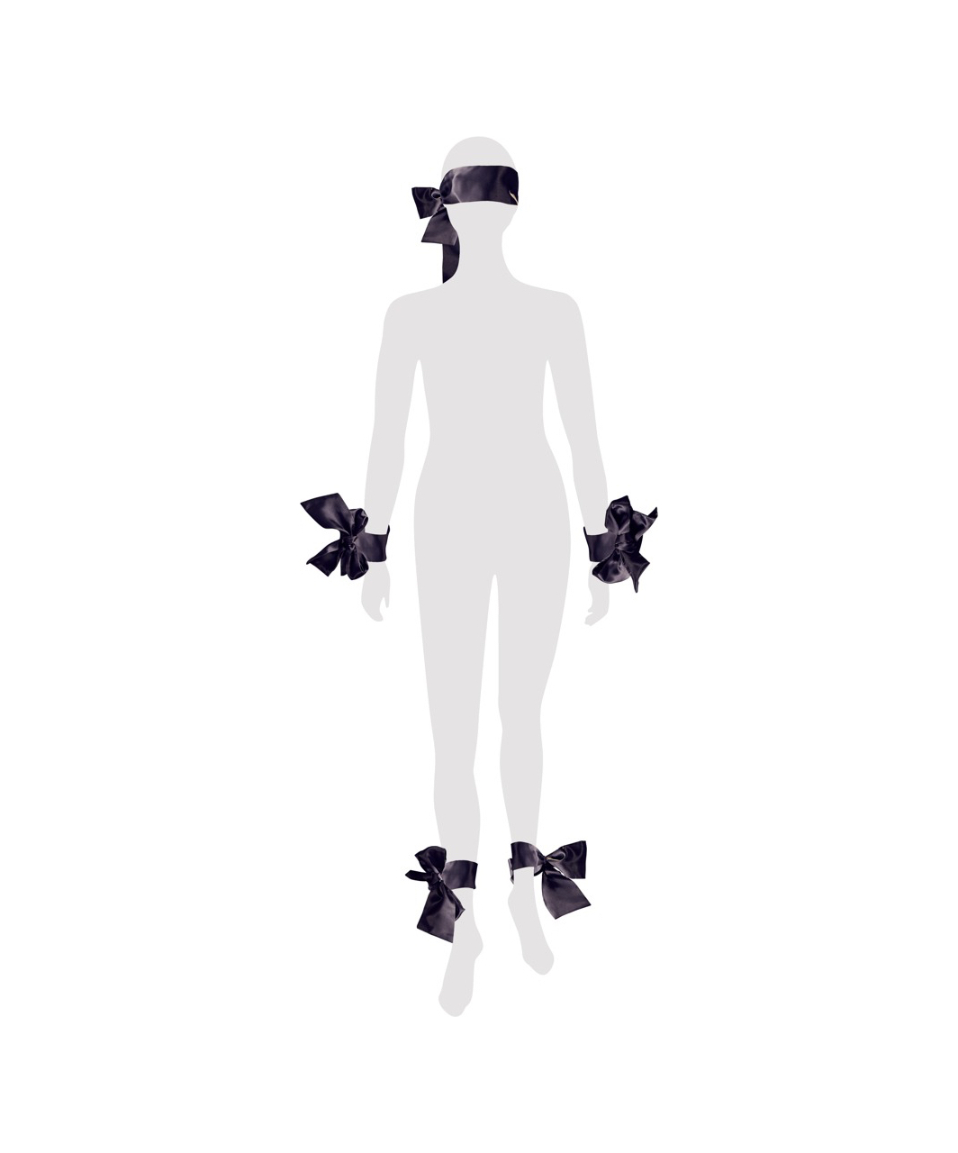 Black satin ribbon set – blindfold (150 x 7.5 cm) & four wrist/ankle ties (95 x 7.5 cm). Material: 100% polyester.