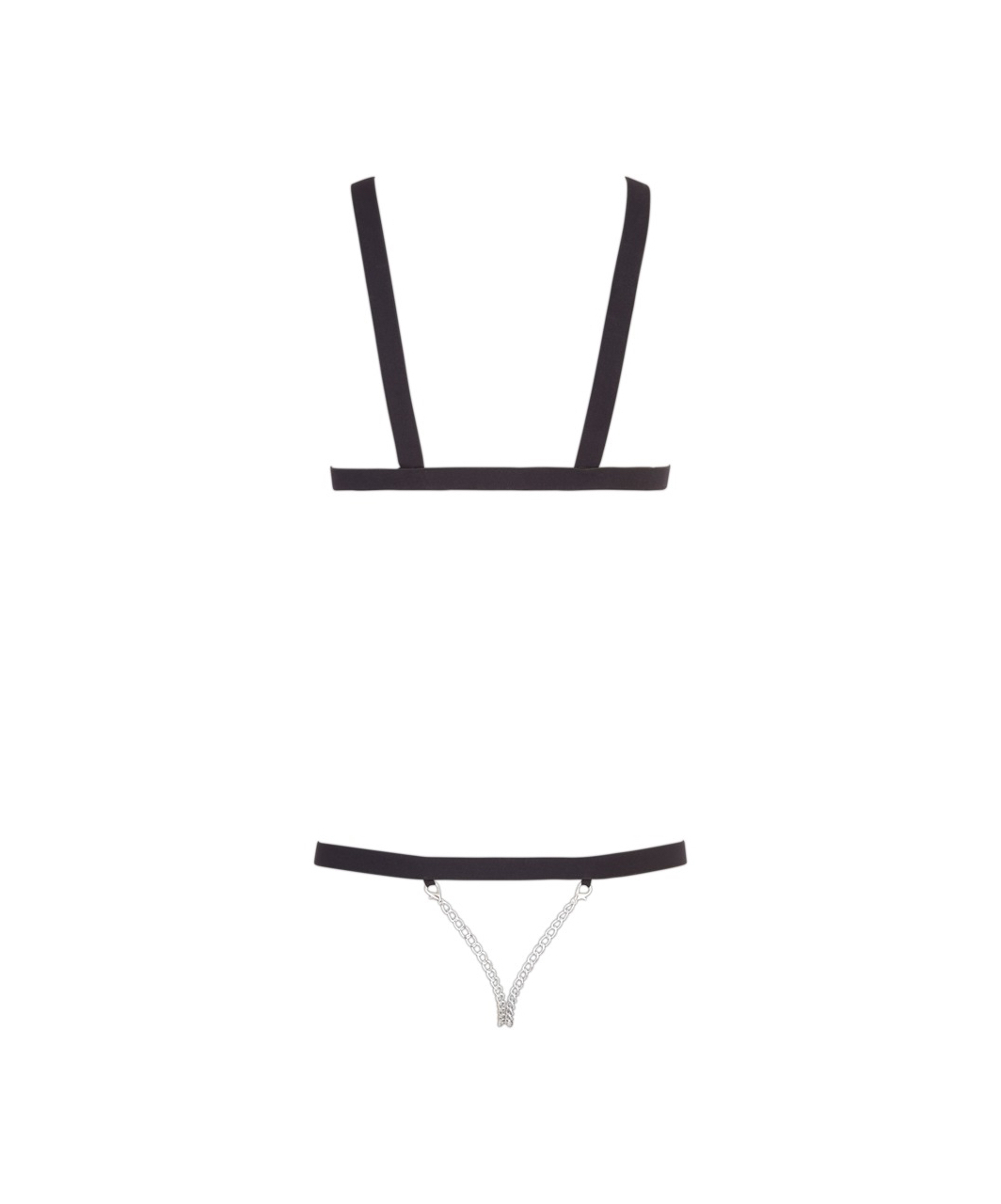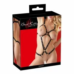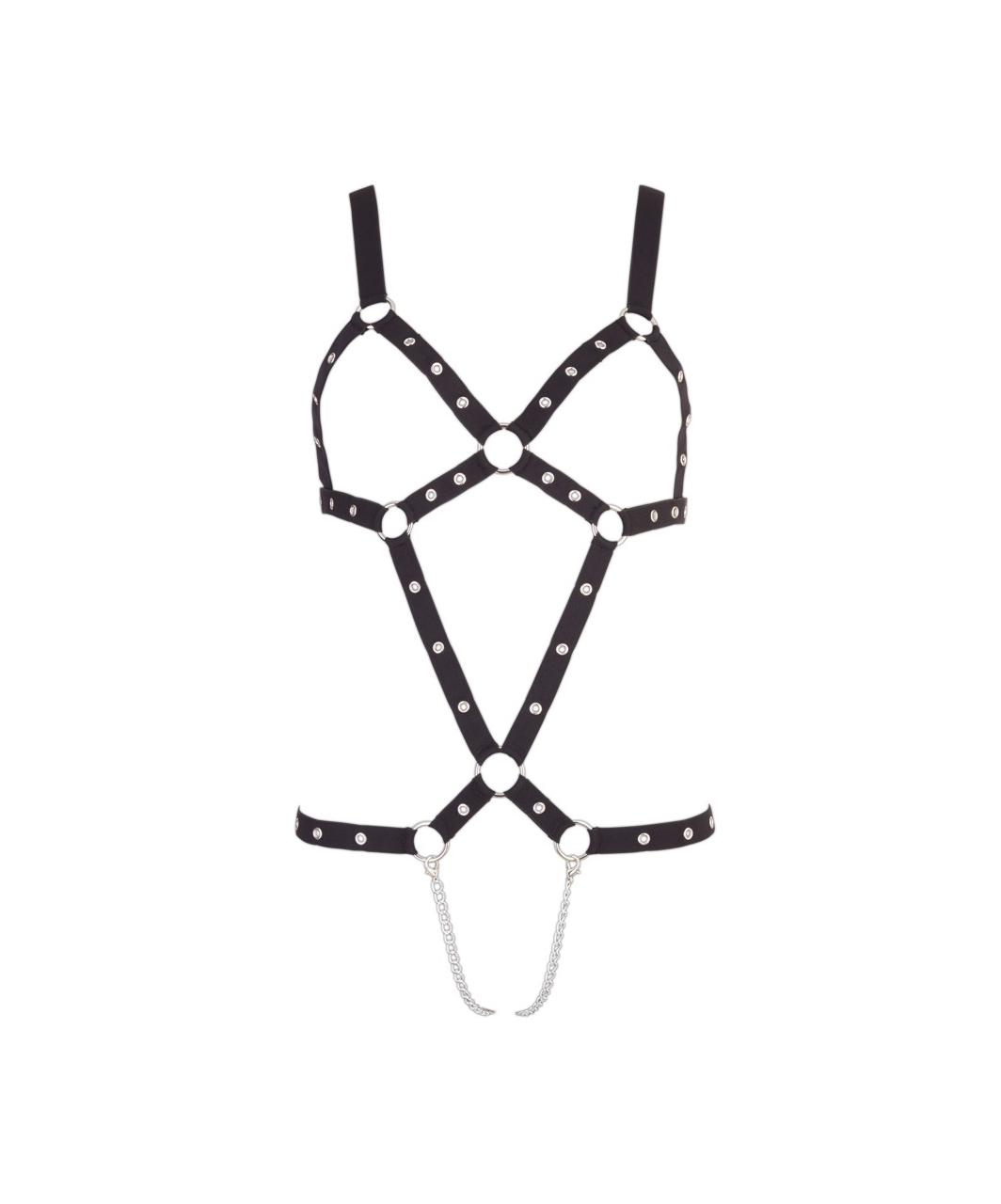 You can enjoy hot bondage games with this black strap body! It is made out of fabric-covered stretchy straps that have studs on them. The 2 removable metal chains go over the crotch to add that sexy final touch to the outfit… 70% polyester, 30% elastane. Black. Unisize.