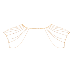 Make your bed or evening look a little spicier with an erotic jewelry piece that will accentuate the shoulders and back curvature. It has gold-colored chains that connect and surround your shapes.