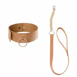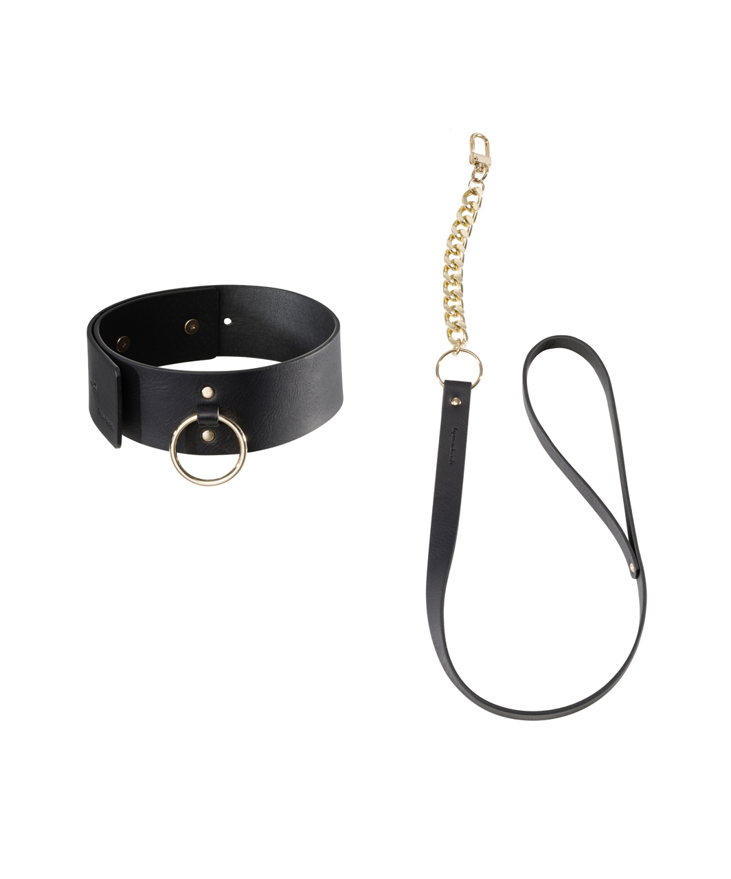 Let your senses get lost in the labyrinth and find the place where Your visible side merges with the hidden one. MAZE is a collection of accessories for women inspired by the BDSM culture. This elegant lightweight collar with gold inserts will be a great addition to your mysterious, bold and captivating look or seductive element in an erotic game with elements of BDSM. The collar has a classic adjustable clasp with 6 holes (maximum neck circumference 39 cm), as well as a removable leash with a gold chain.
