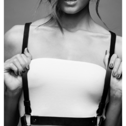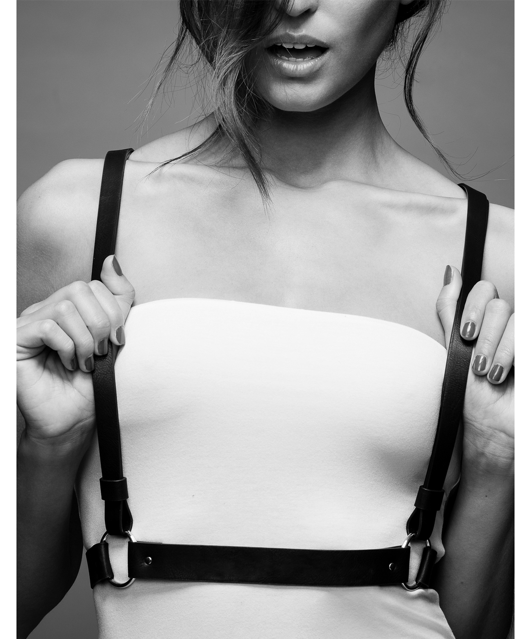 BDSM inspired X-shaped harness. Combine with your best outfits and lingerie. Adjustable straps that can be worn both straight and criss-crossed. 100% adjustable around the chest and shoulders. 100% vegan.