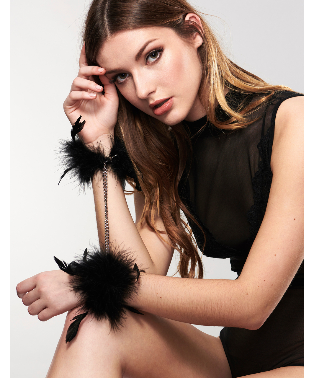 Decorative handcuffs made of Marabou feathers with 18 cm long metal chain.