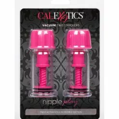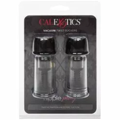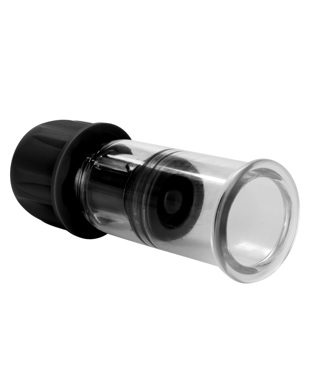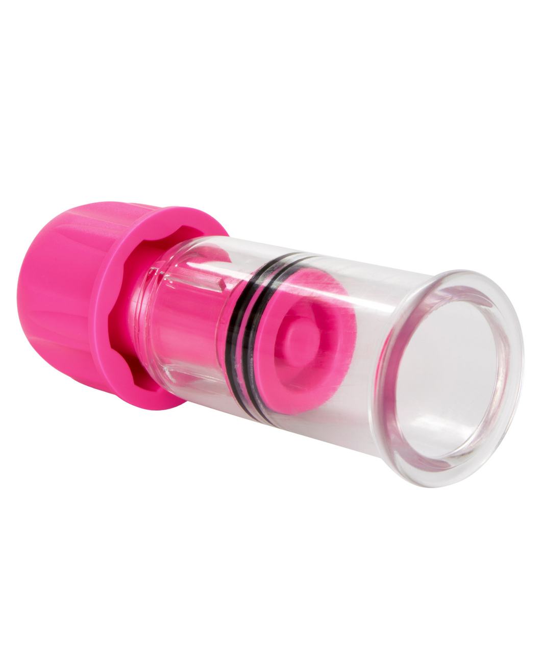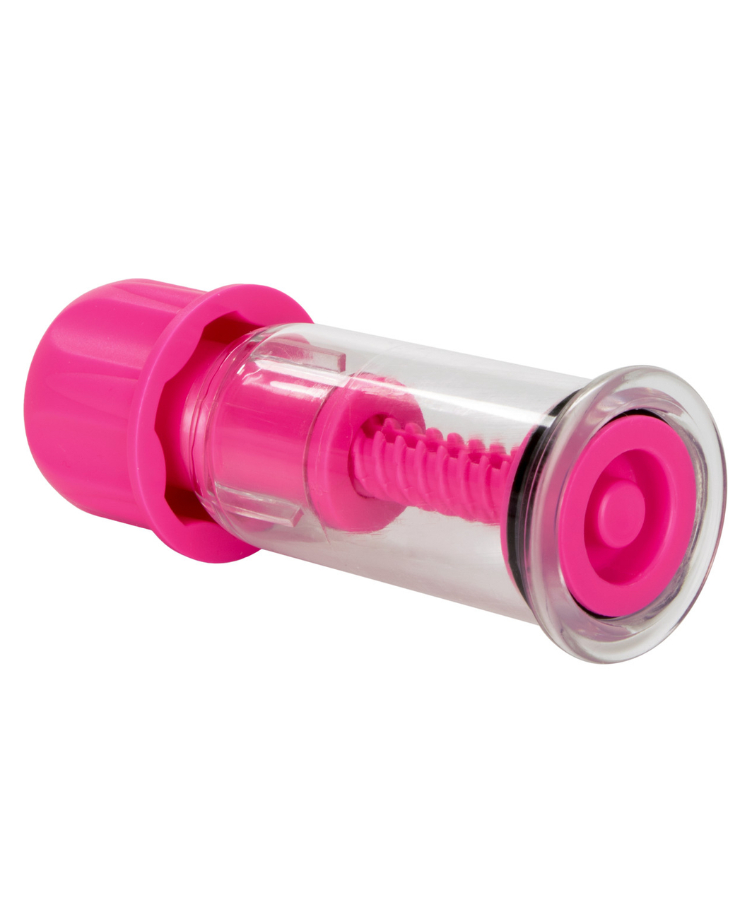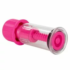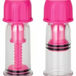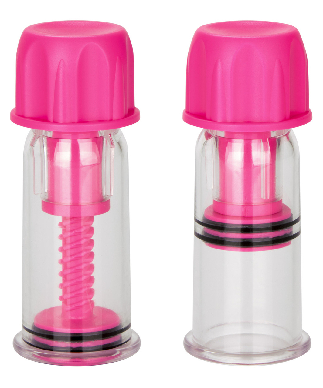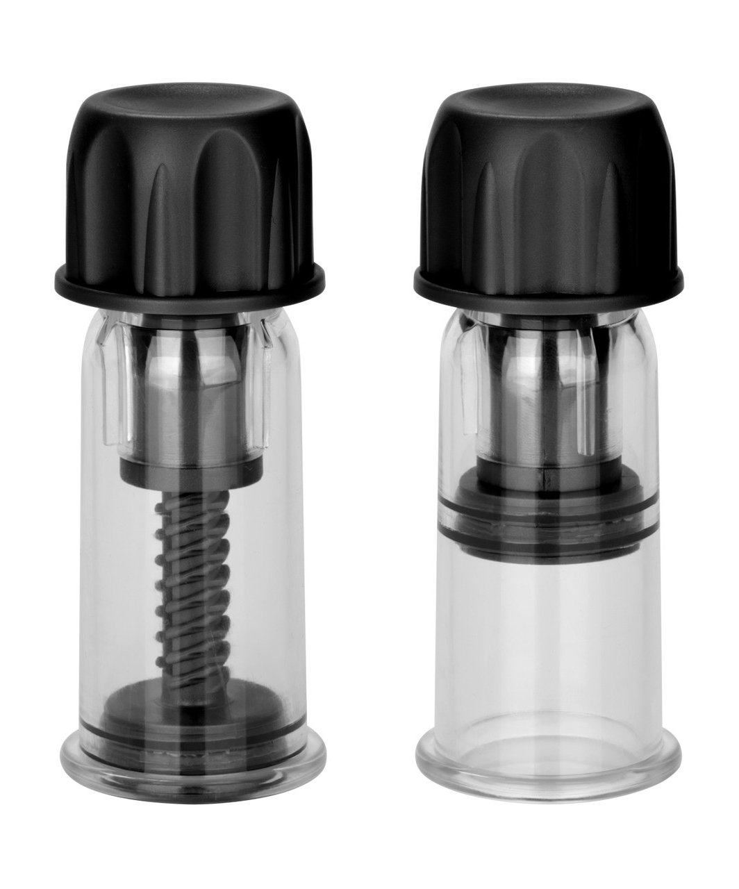 Transparent vacuum nipple pumps. Each has a twistable cap at the top, when turned, it moves the piston which creates a stronger vacuum.