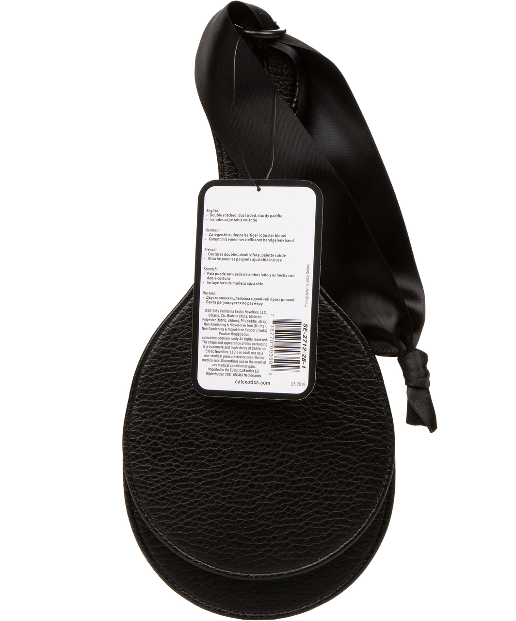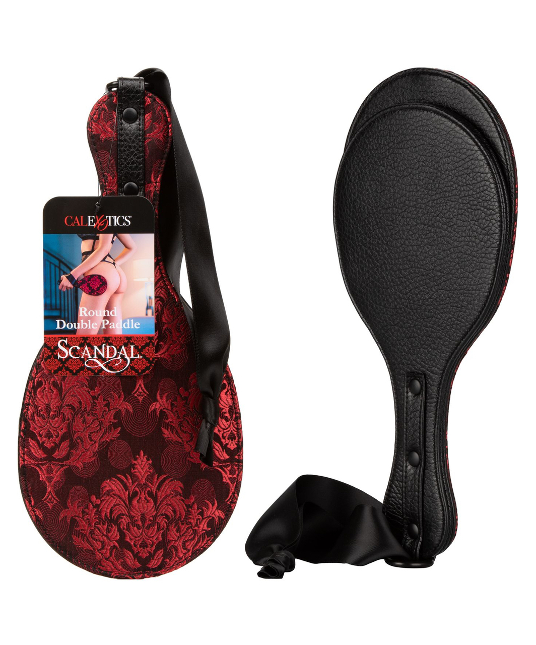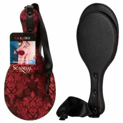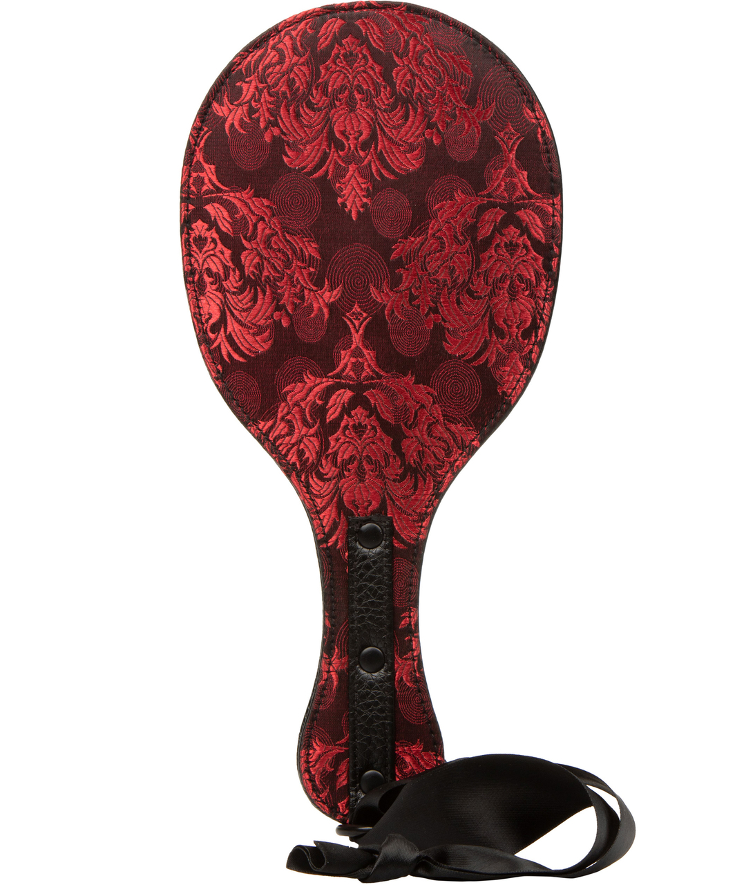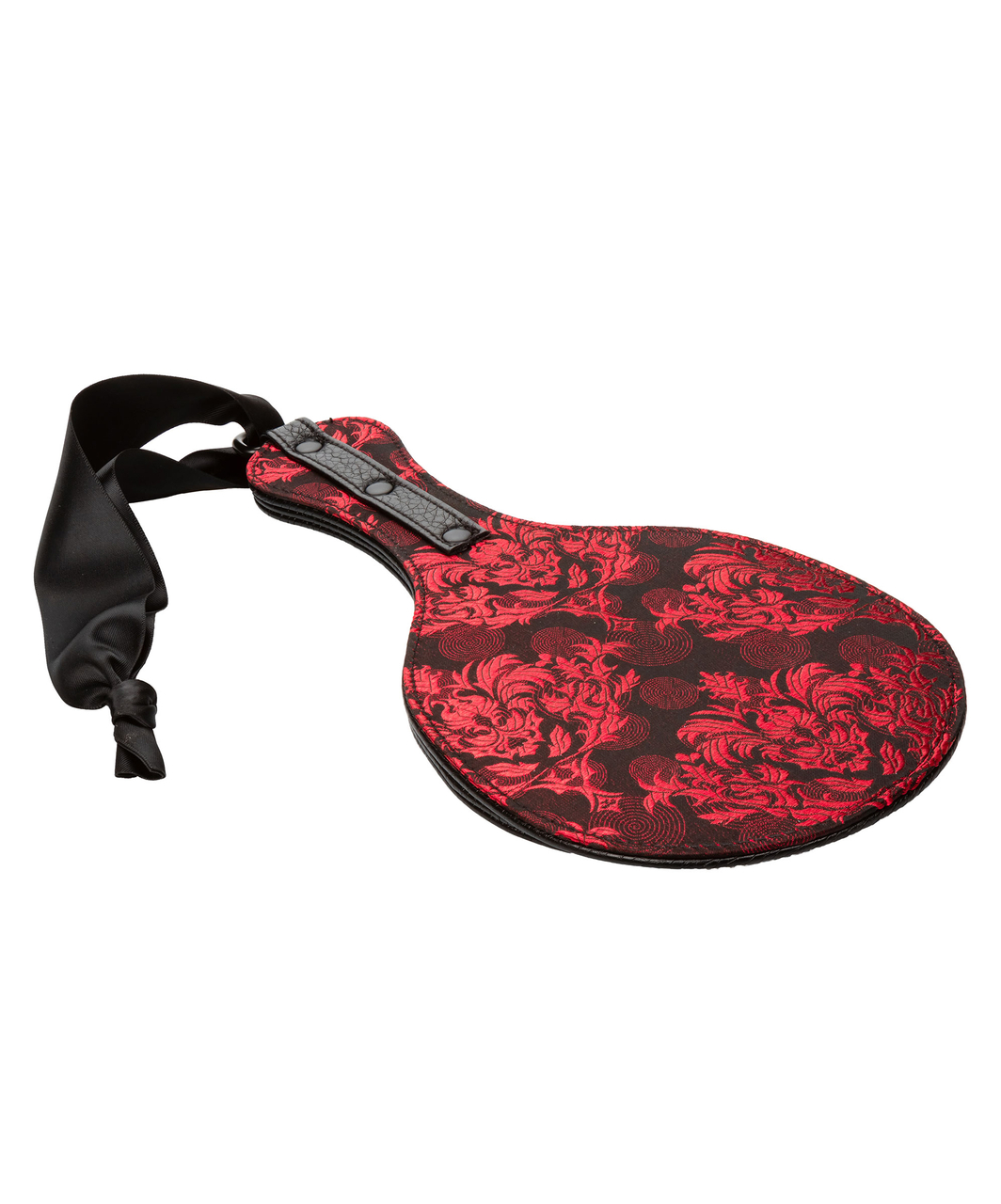Effortlessly plant stinging taps on your submissive with the round dual layer paddle. Punishment and pleasure go hand in hand with the dual paddle with an edgy leatherette interior and silky brocade exterior.