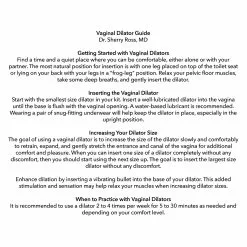 Dilators should be used for the treatment and prevention of vaginal atrophy (atrophic vaginitis) and vaginismus. Vaginismus is an unconscious contraction of the pelvic floor muscles which makes penetrative sex painful, difficult or impossible. A similar muscle response may occur during a gynecological examination. This set will help to gradually expand the vagina and relax the pelvic floor muscles using massage therapy.