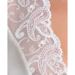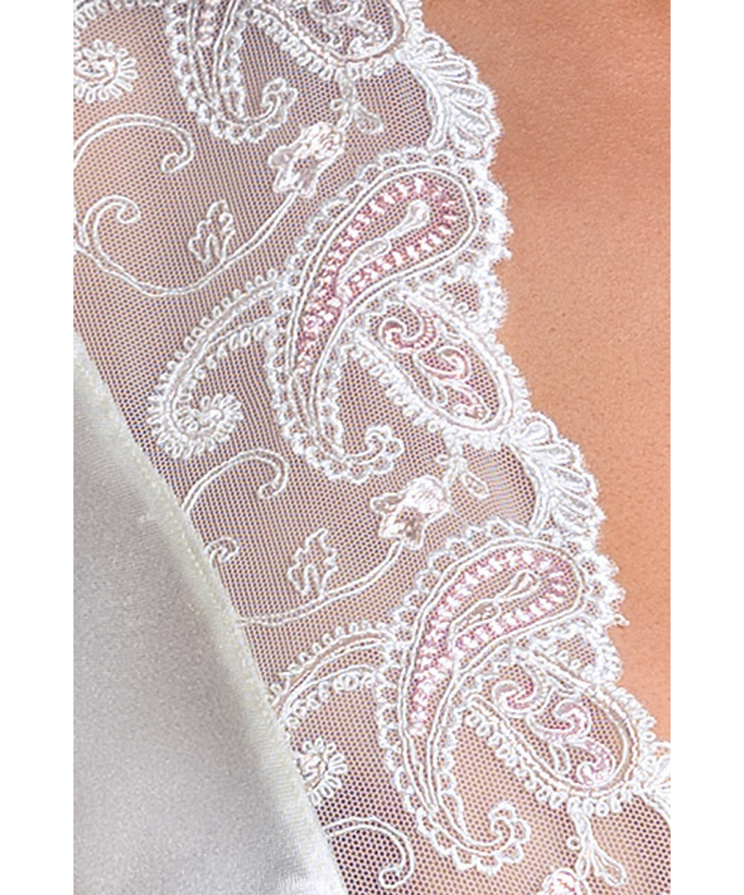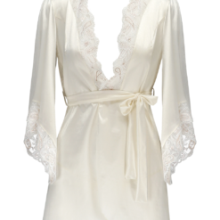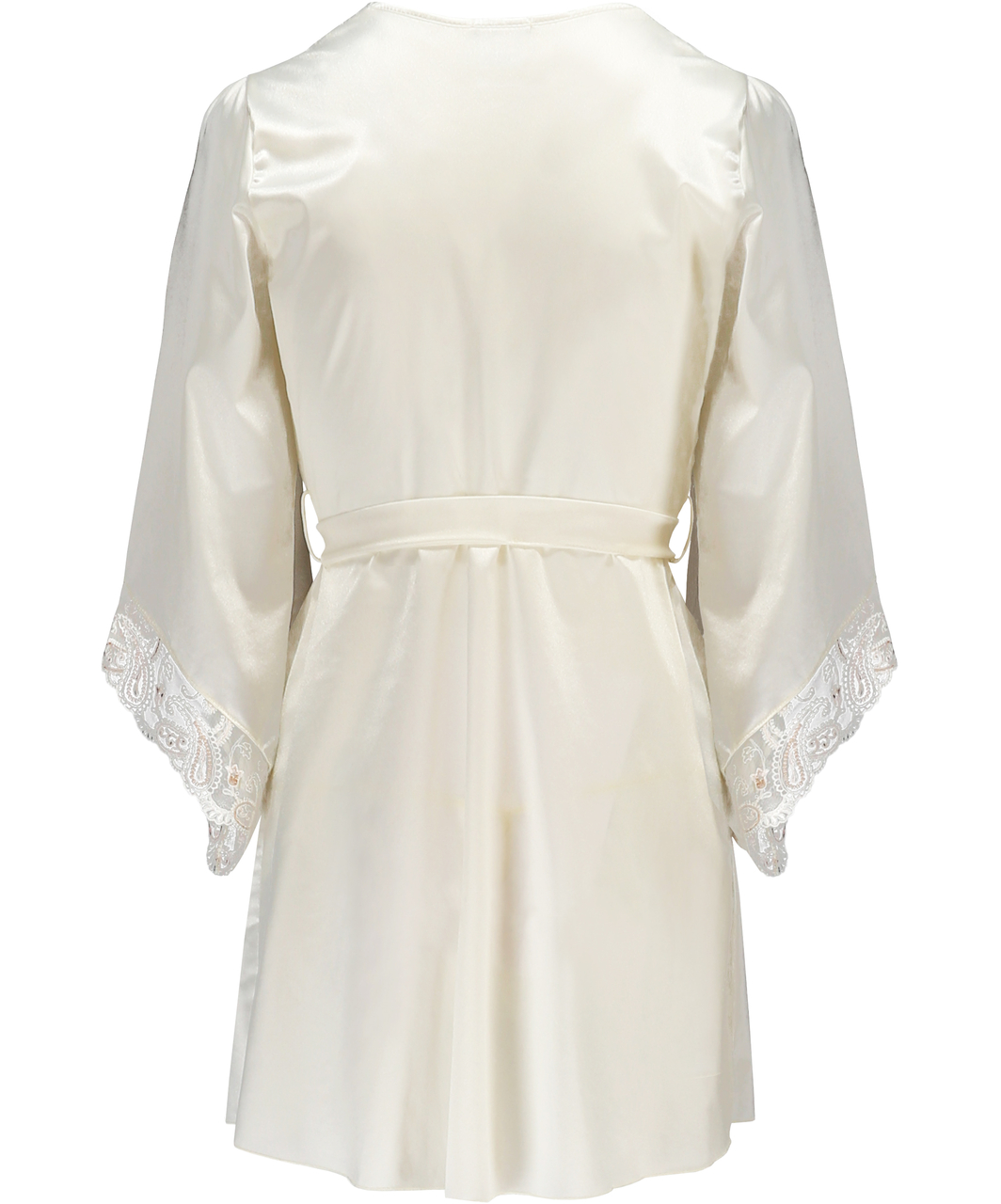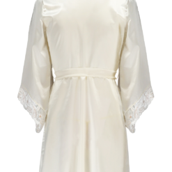 A dressing gown with angel sleeves – made of soft ecru satin and delicate lace. Includes sash and matching string.