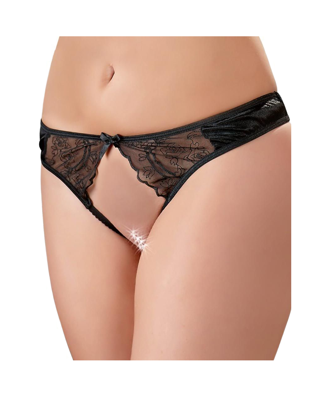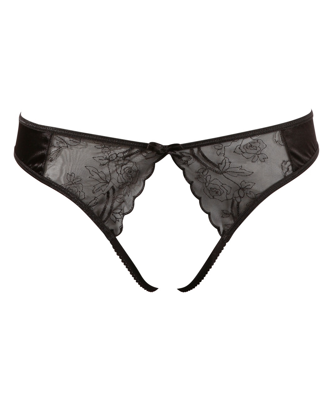 Crotchless black satin string.