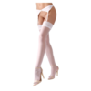 Black hold up stockings with a 12 cm wide lace top that have a silicone strip inside. 20 den.