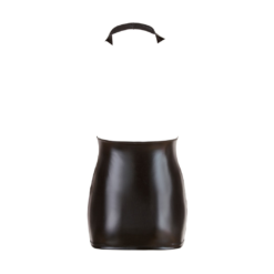Tight-fitting black matte look halterneck mini dress. With plunging neckline and completely backless.