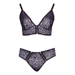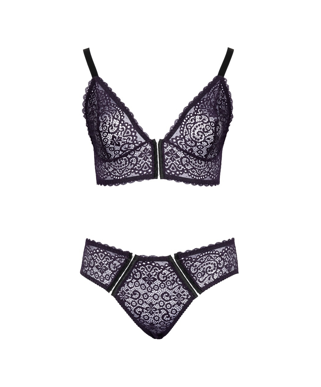 Purple soft and stretchy lace lingerie set – soft bralette and panties, both with hook front closures. Straps are adjustable.