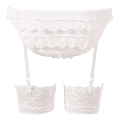 Short shirt to bend. Pleated skirt with exciting bottom-cutout, sweet frill-brief with adjustable suspenders. Zip in the back. Incl. tie and stockings.