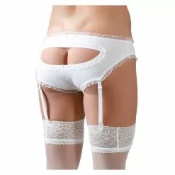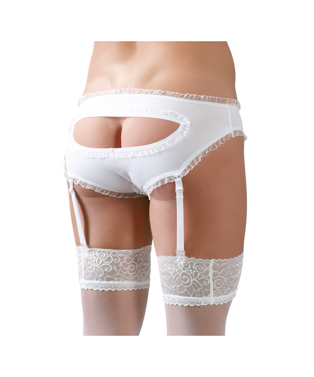 Sexy tie and slightly flared mini skirt with a zip at the side. A short top that can be tied together at the front with short sleeves that can also be tied together, as well as crotchless panties with a sexy peephole at the back. With a coloured check pattern.