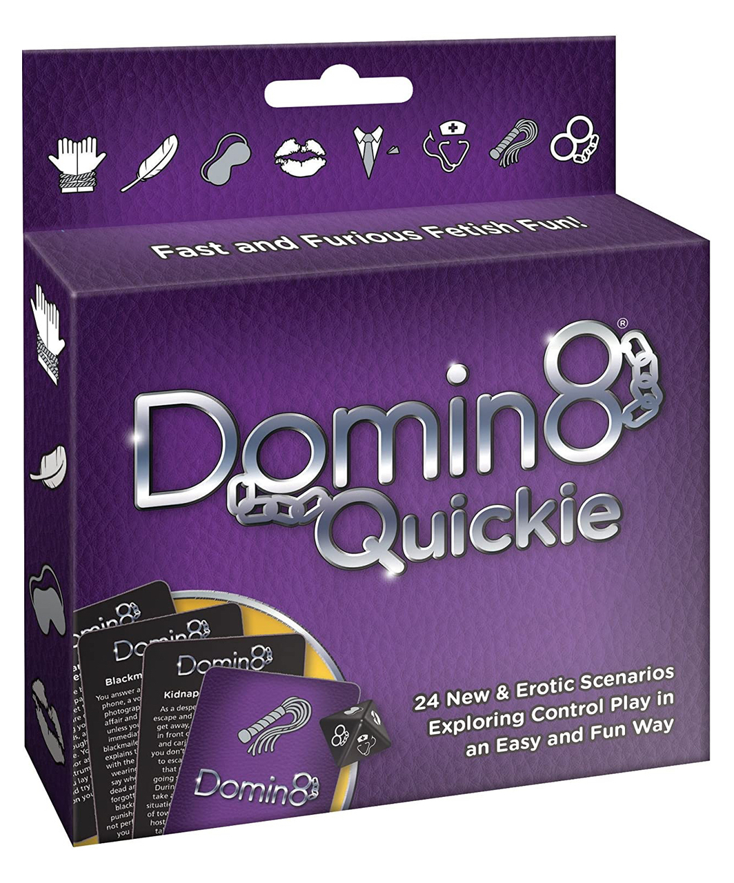 Domin8 Quickie contains 24 new fantasy scenarios including Head Chef & Sous Chef, Priest & Demon, Mad Scientist & Trial Subject and many more! Only the die holds the power to decide which fantasy you will be fulfilling. A simple roll will submerge you into the Domin8 Quickie Scenarios filled with Submissive and Dominant play. Erotic role play within the 8 different Domin8 categories awaits your discovery. Not only can Domin8 Quickie be your very own travel version of the original Domin8 game, it can be added to your Domin8 game for even more highly erotic scenarios for you to enjoy.