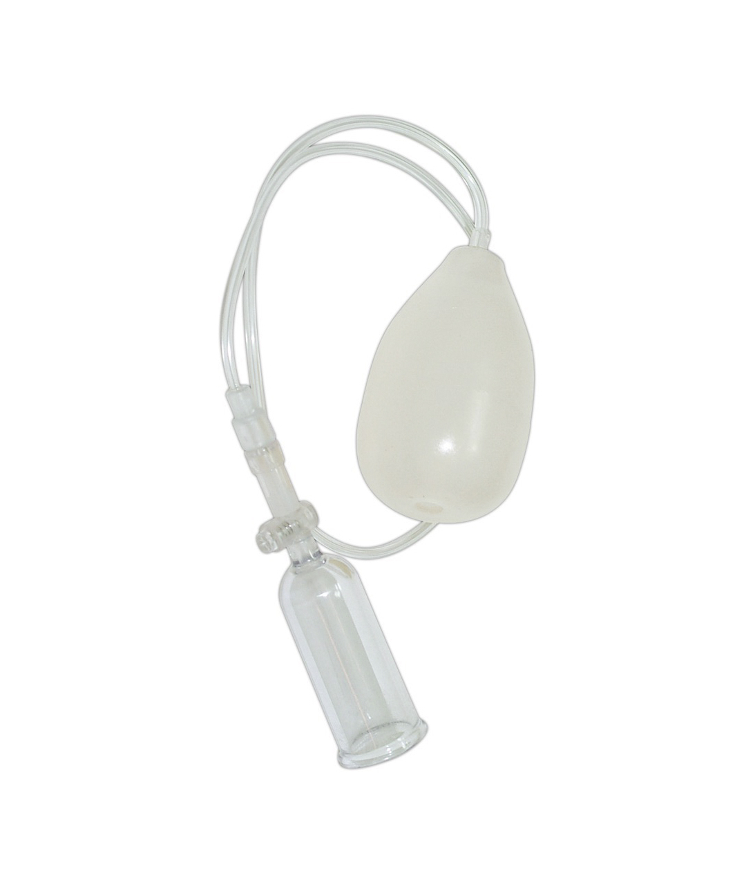 To enlarge nipples or clit. Vacuum pump with two suction cups. Solid easy-glide material. Cup-Ø 2 cm, 6 cm deep.
