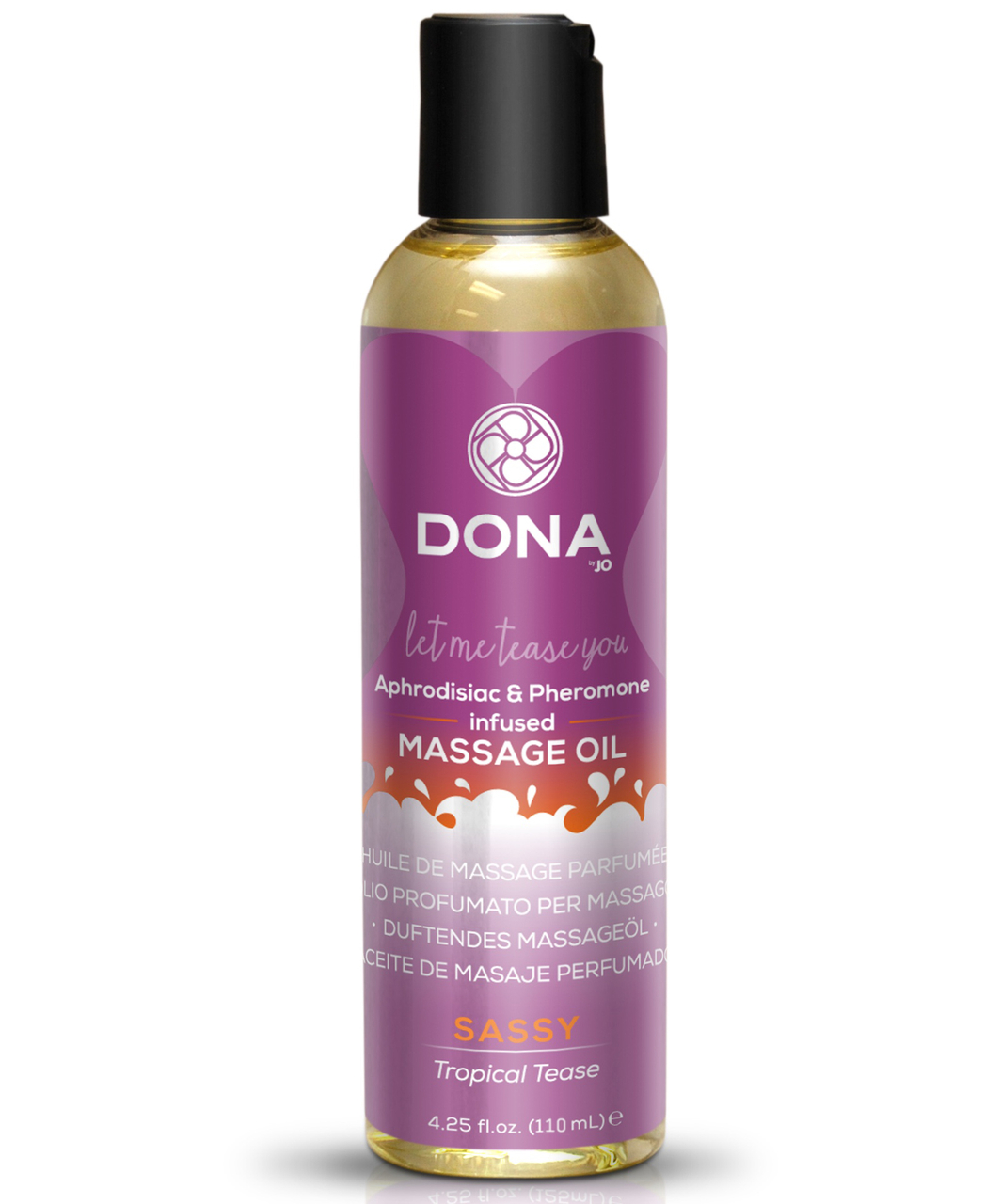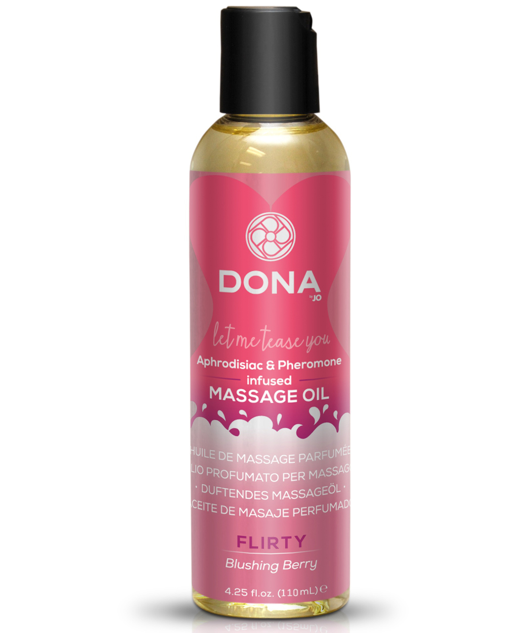 Entrance your lover with DONA Scented Massage Oil. Our love-struck blend of aphrodisiacs & pheromones and intoxicating aromas will leave skin beautifully scented and irresistible to the touch. Non-greasy, long lasting formula that moisturizes and rejuvenates skin.