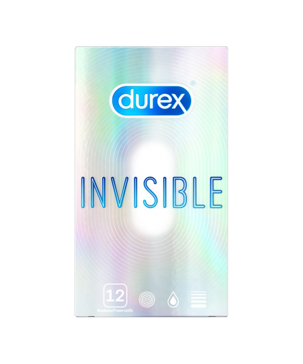 Transparent and slightly scented natural latex cylindrical condoms lubricated with a silicone-based lubricant and with a reservoir. Durex Invisible are very thin & stretchy which means that they fit perfectly and 98% of the body heat transfer is retained.