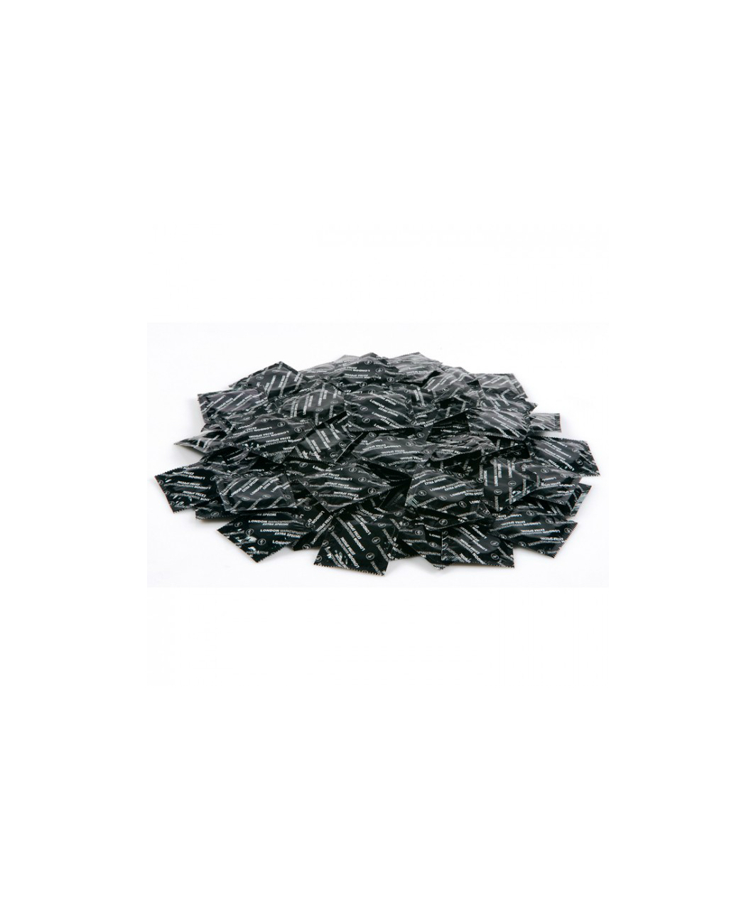 Large transparent cylindrical, thick and durable condoms made from natural latex, lubricated, with reservoir.