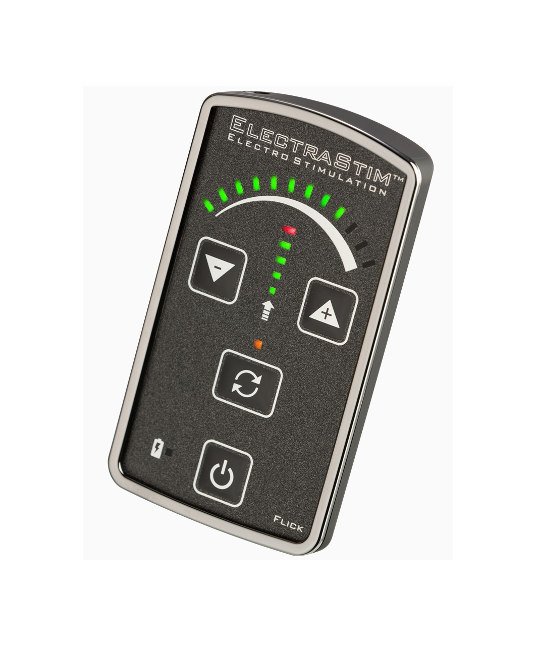 Smaller, slimmer and sexier than our classic EM32 models, ElectraStim Flick has 7 stimulation settings with escalating patterns and pulsations, each operable at 24 intensity settings to suit your tastes. As if that wasn’t enough, the patented Flick feature offers rhythmic stimulation in sympathy with your hand movements for a completely tailored electro play experience. This electro sex beginner’s pack includes the single-channel EM60 Flick unit, 4 ElectraPads, a connecting wire with 2x 2mm pin connectors, a USB charging cable, a storage pouch.