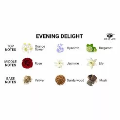 The Evening Delight eau de parfum for women is a vibrant and sophisticated scent that exudes positivity and celebrates aspiration and craving as the day meets the night. The perfume contains a synthetically derived biologically active formula similar to the steroid androstadienone. It enhances the effect of your pheromone and men’s reaction to the presence of the pheromone can be expressed with more interest and favor. Boost your confidence and attractiveness with Evening Delight!