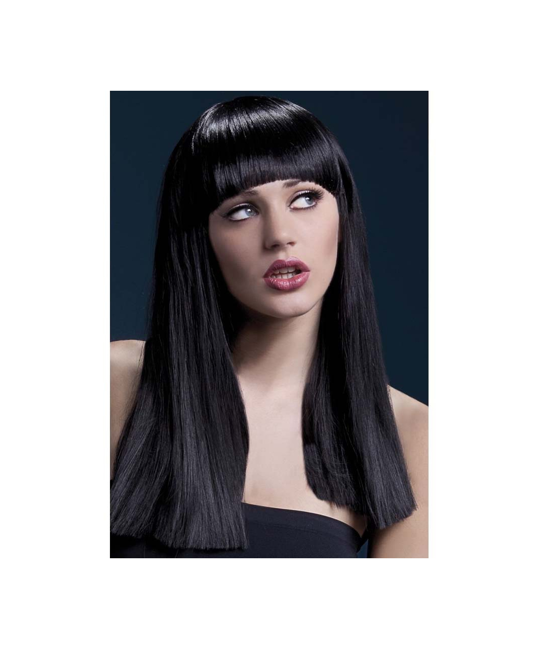 Long (48 cm) blunt cut hair wig with fringe. Professional quality synthetic wig that is made from heat resistant material and is heated styling tool compatible.