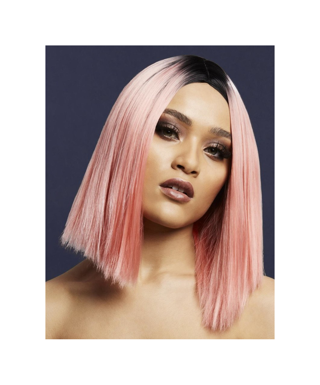| Two toned blend 37cm/15in straight long bob wig with centre parting. Professional quality synthetic wig that is made from heat resistant material and is heated styling tool compatible.