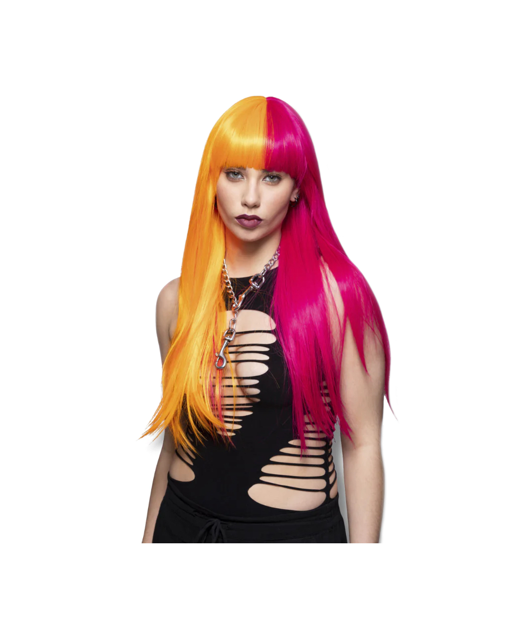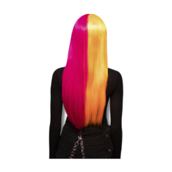 Manic Panic Candy Pop Downtown Diva is a vibrant split color wig with long straight hair and curved fringe. Professional quality synthetic wig that is made from heat resistant material and is heated styling tool compatible.