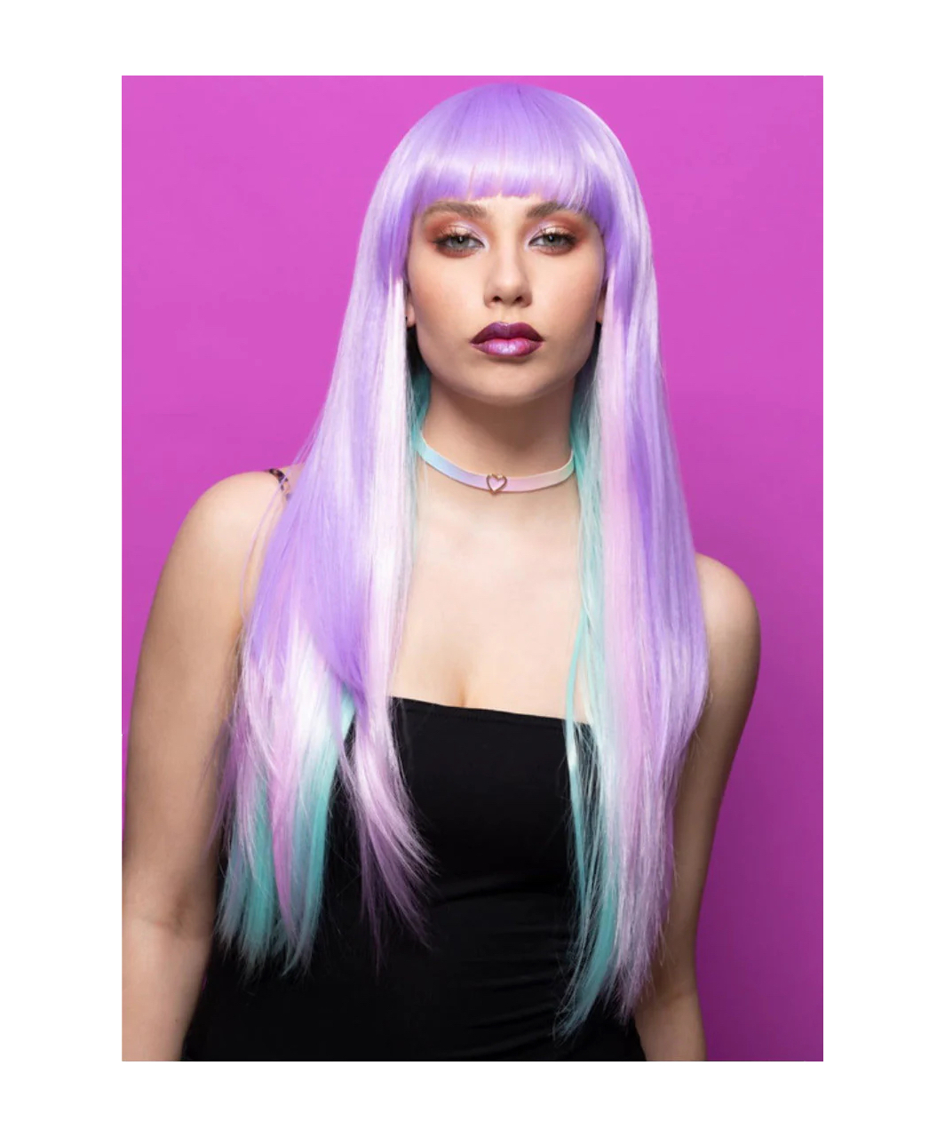 Manic Panic Fairy Queen Downtown Diva Wig with long straight hair and curved fringe. Professional quality synthetic wig that is made from heat resistant material and is heated styling tool compatible.