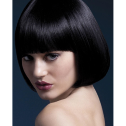 Short (25 cm) bob with straight fringe. Professional quality synthetic wig that is made from heat resistant material and is heated styling tool compatible.