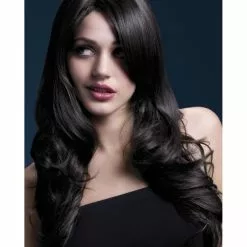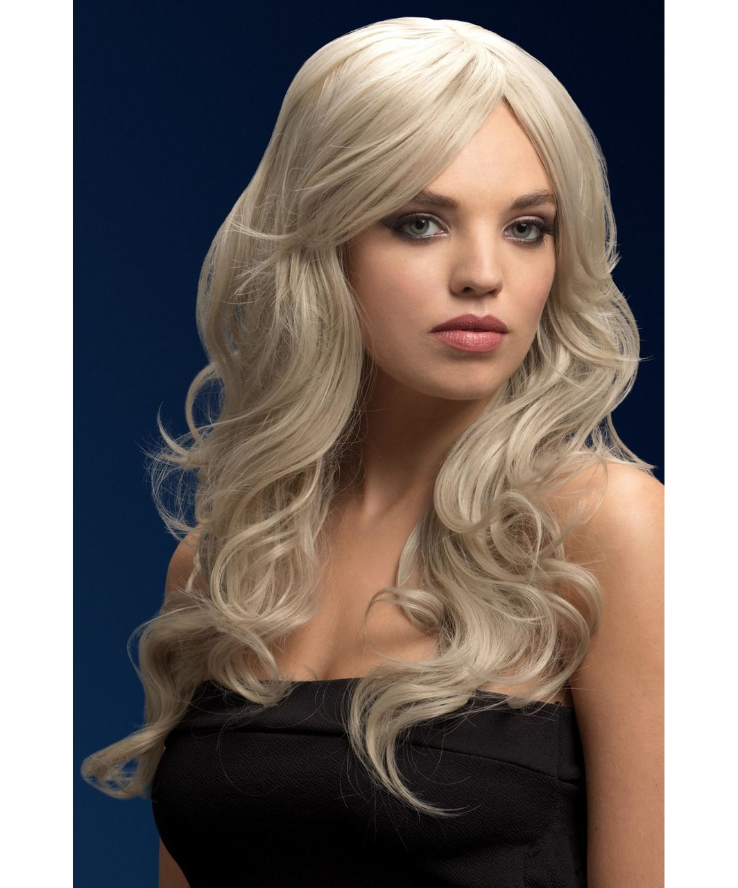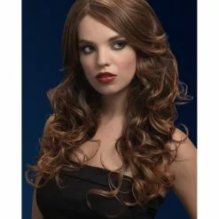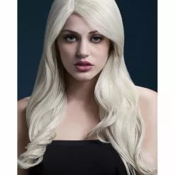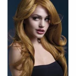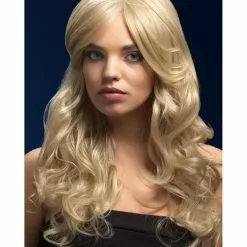 Long (66 cm) wavy wig with side parting. Professional quality synthetic wig that is made from heat resistant material and is heated styling tool compatible.