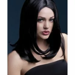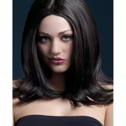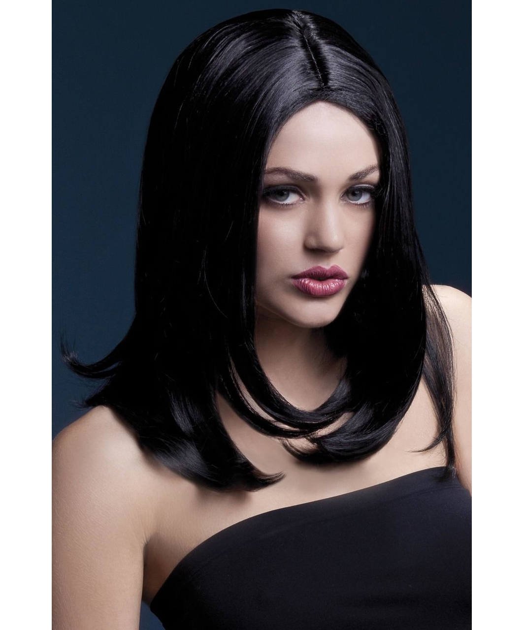 Medium long (43 cm), layered cut wig with centre parting. Professional quality synthetic wig that is made from heat resistant material and is heated styling tool compatible.
