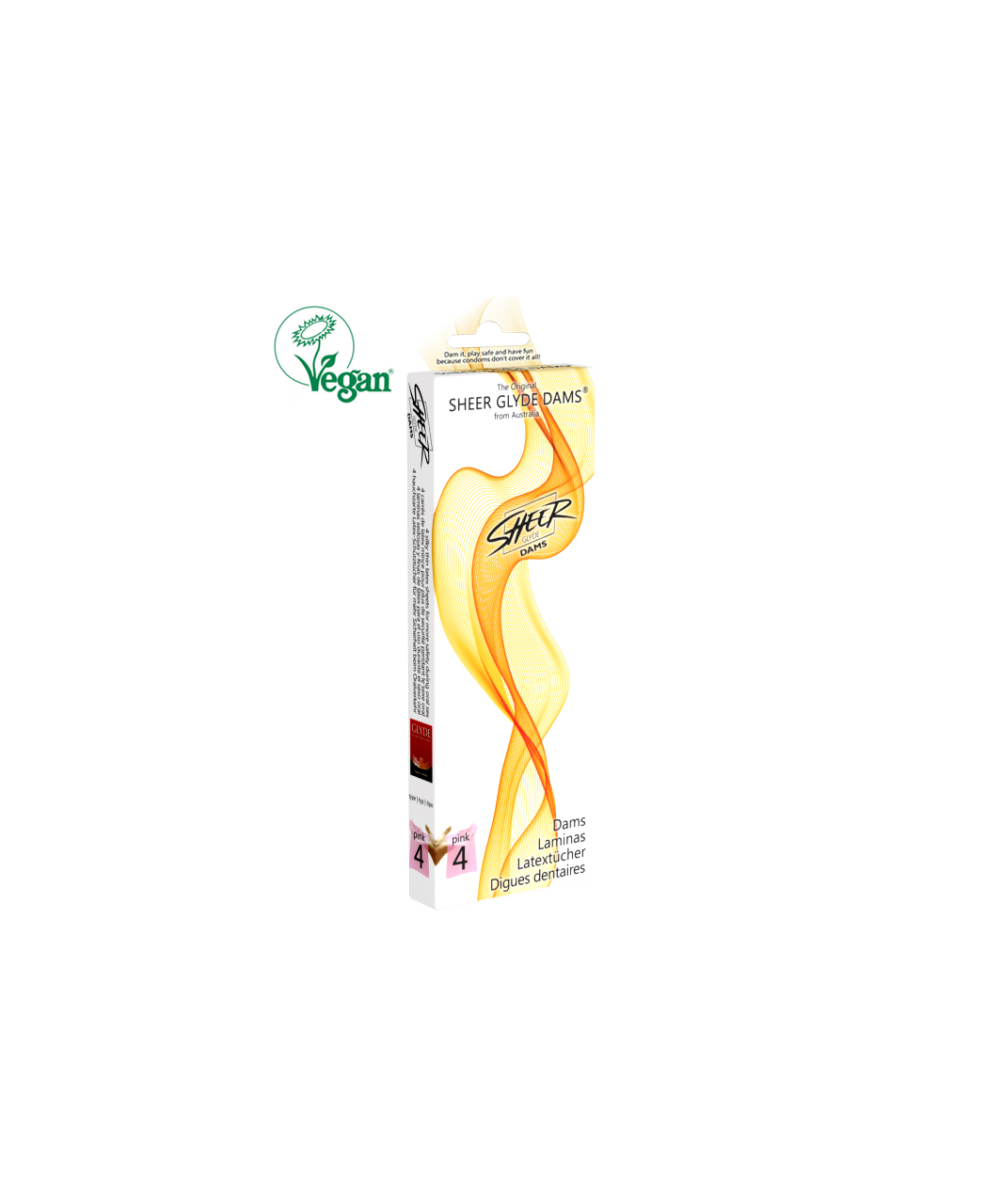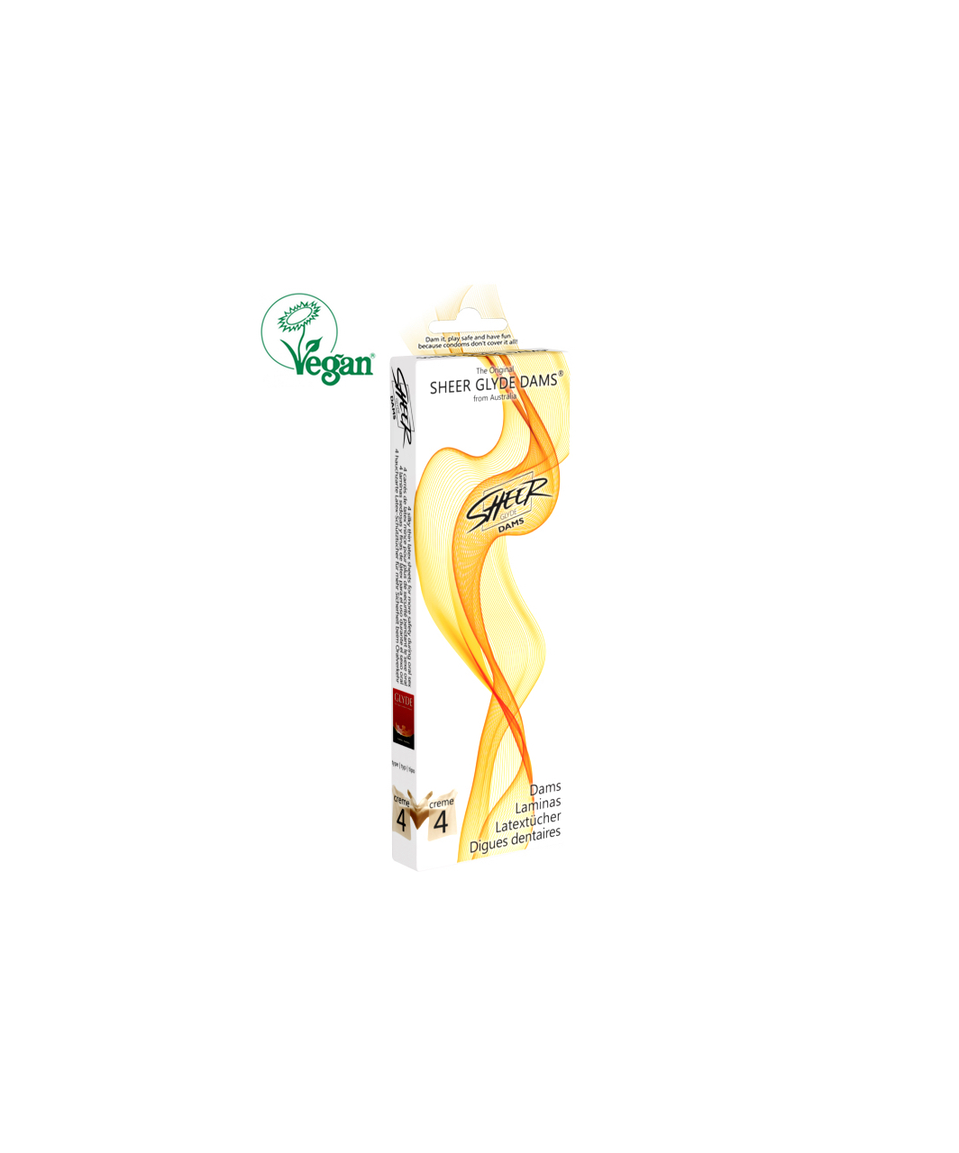Sheer Glyde Dams are registered with The Vegan Society Trademark; no animal testing.