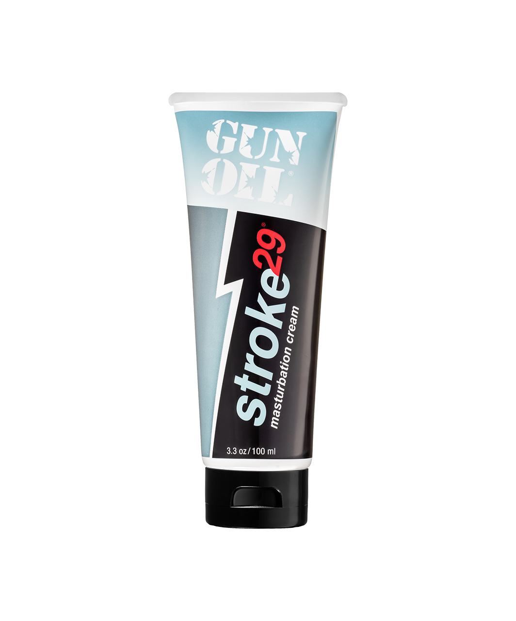 The Masturbation Cream That Lasts Longer Than You Do. Stroke 29, Gun Oil’s premium cream lubricant, is designed to take masturbation to a whole new level. Unlike Silicone- and water-based lubricants, this thick, non-greasy formula provides more than just wet slipperiness. After years of research, our team has developed a lubricant that gets better the longer you use it. As the cream heats up from repetitive stroking of masturbation, around the 29th stroke, the product transforms from a thicker jelly to a thinner oil! With the combination of heat and friction, a guy might actually forget he’s using his own hand. Stroke 29 provides a glide unlike any other masturbation lubricant available. Stroke 29 skin-beneficial almond oil, Aloe Vera and Vitamin E and is fragrance- and irritant-free. Not recommended for use with latex condoms.