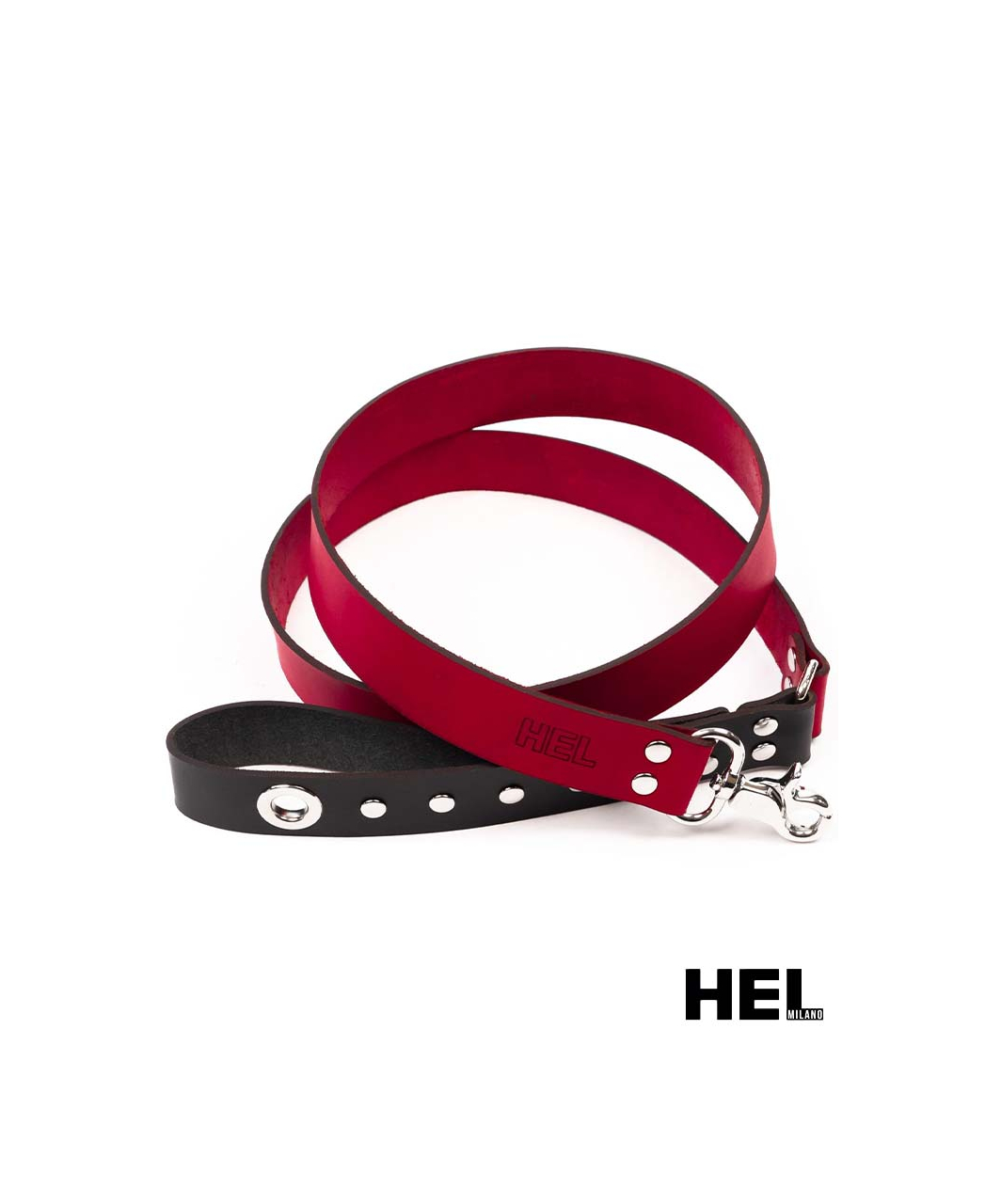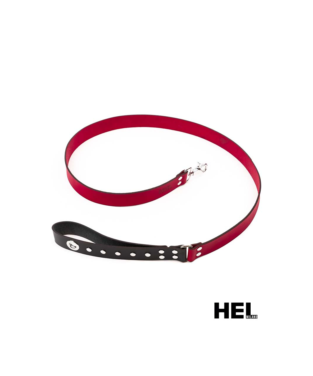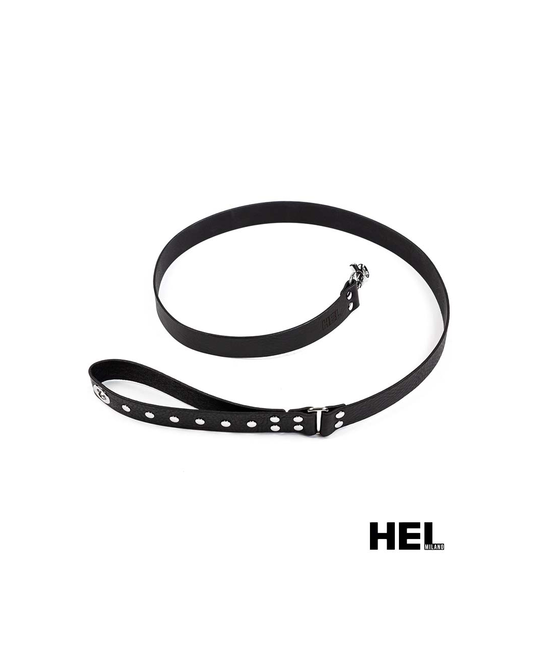 This Leash from our signature HEL collection is made from luxurious Italian calf leather and high quality nickel plated metal hardware. The leash features a metal snap hook on one end, loop handle and a metal rivet detailing.