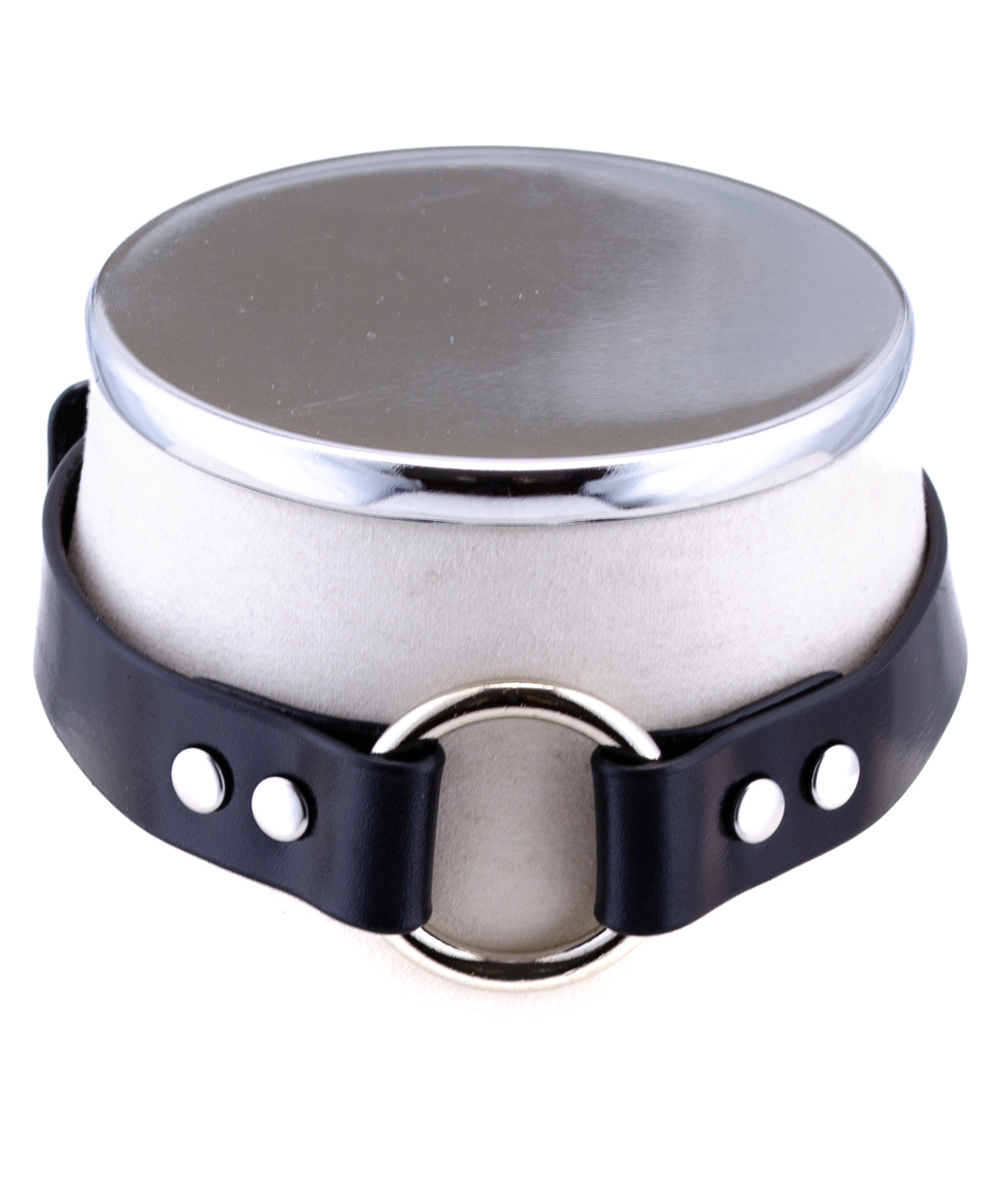 Comfortable and soft, Mia leather collar is a classic O-ring design that will compliment any outfit. It can be worn to a party, during play time or as a kinky accessory to your everyday look. Features silver coloured hardware and laser etched logo.