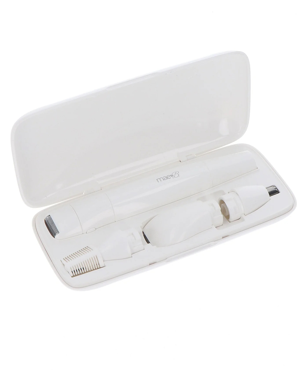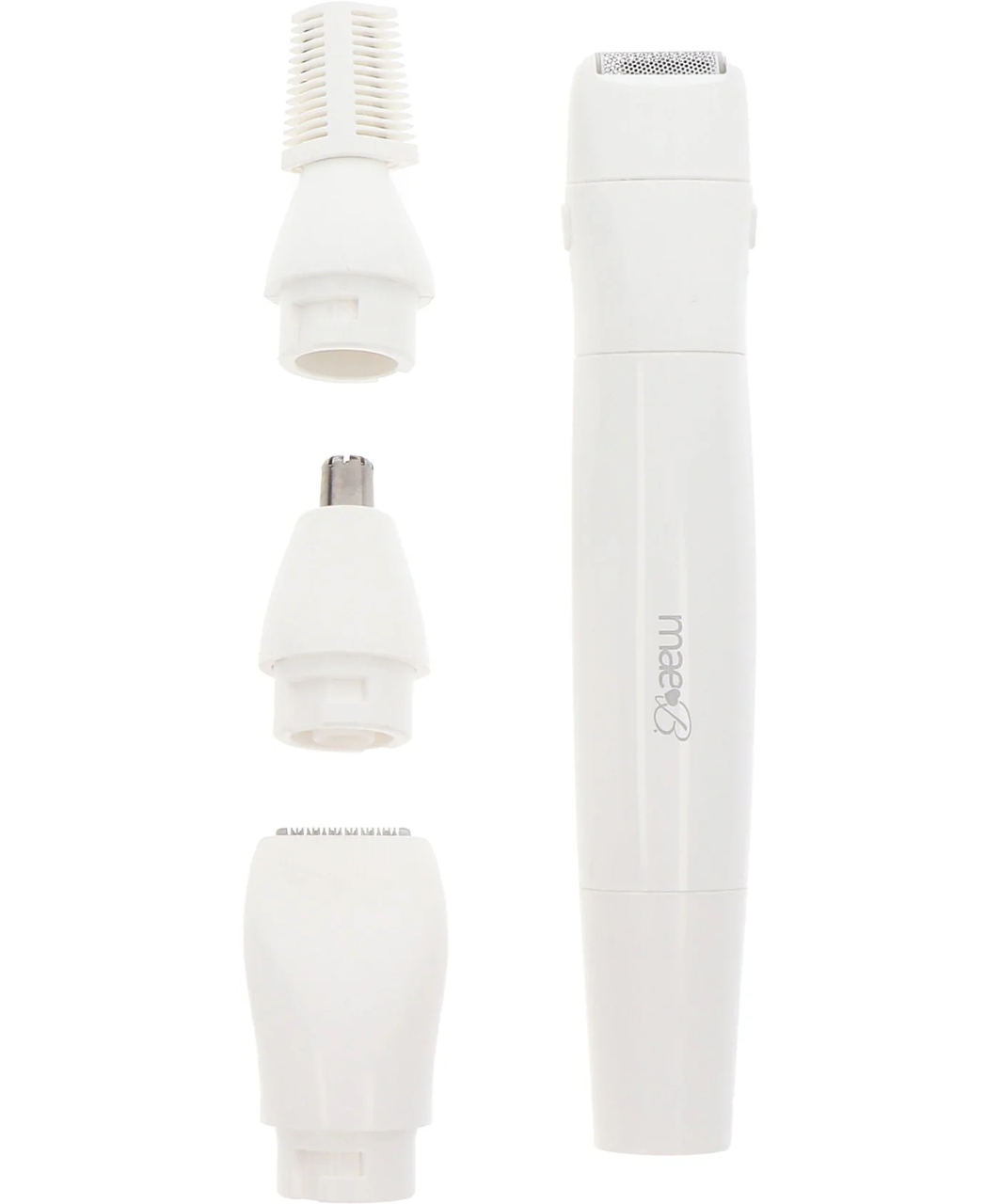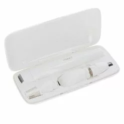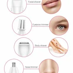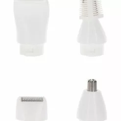 This is precision trimmer for women – to trim and style facial and body hair. The all-in-one electric shaver includes a complete set with four different trimmer heads: for long hair, for short hair, for eyebrows and for nose/ears.