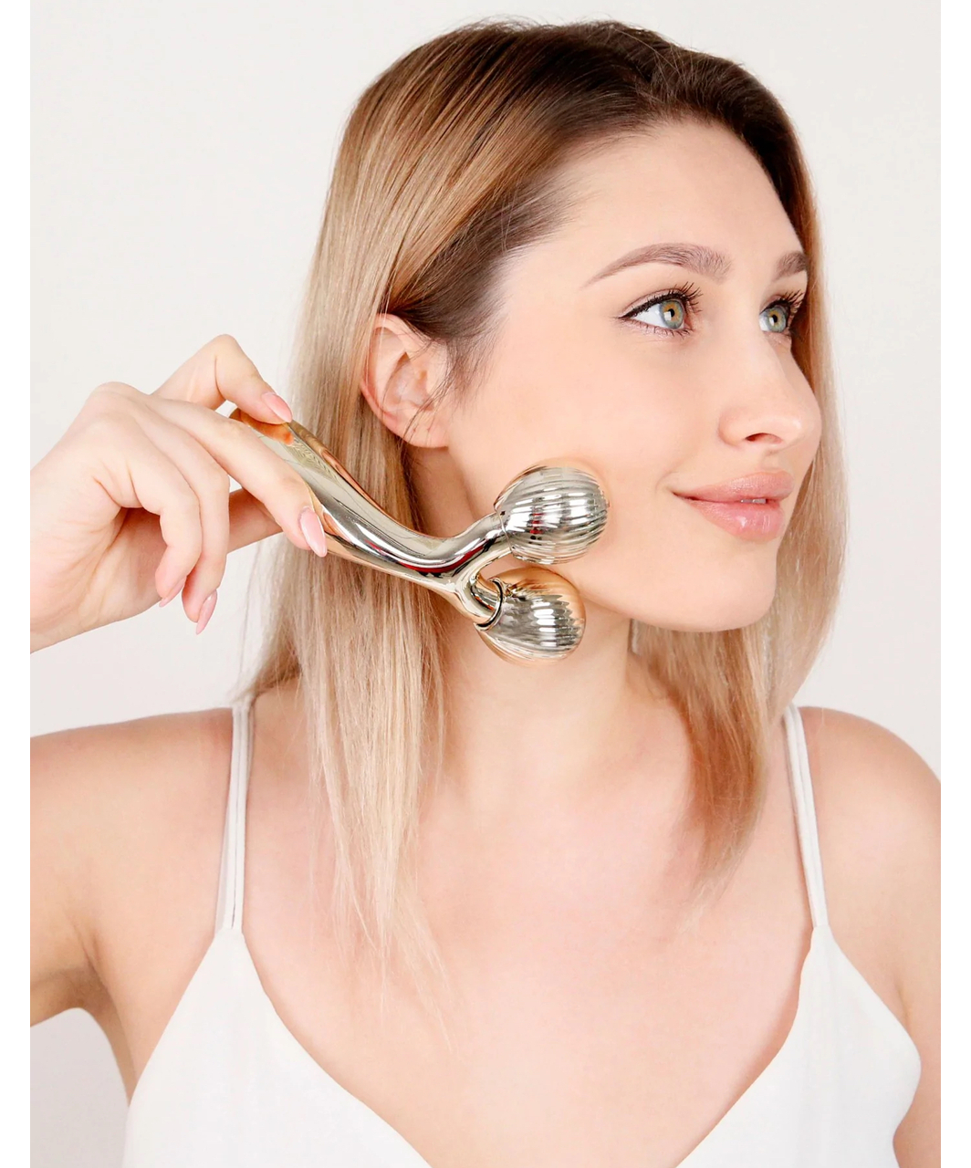 • Facial massage: gently move the roller from the jawline to your cheekbone. Then slowly slide the roller from the corner of your mouth to your ear.